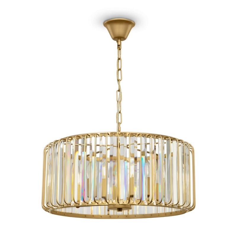 Изысканный декор делает светильник воздушным и утонченным, добавляет ему роскоши и статусности, а ещё – дарит богатую игру света. В сочетании с металлической арматурой модных оттенков "шампань золото" и "шампань серебро" получается торжественный, праздничный дуэт. Источники света, стилизованные под античные свечи, скрыты за стеклянным обрамлением – за счёт этого лучи красиво преломляются, создавая многогранные переливы. Гостиная и спальня, выполненные в стиле неоклассика, ар-деко, модерн приобретут новое звучание вместе с такой эффектной подсветкой.