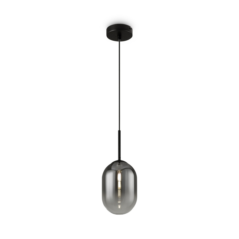 Арматура из металла матового черного цвета. Плафон из стекла с окрасом растяжка. Цвет дымчатый. Модификация — настенные, потолочные и настольные светильники. Источник света — лампа. Цоколь G9.