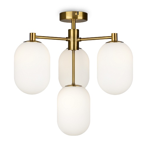 Арматура из металла цвета латуни. Плафоны овальной формы из белого матового стекла. Форма плафонов дает рассеянный свет, максимальная пропускная способность. Источник света лампа. Цоколь G9. Широкая линейка позволяет организовать комплексное освещение в едином стиле.