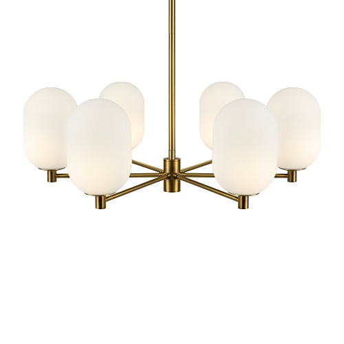 Арматура из металла цвета латуни. Плафоны овальной формы из белого матового стекла. Форма плафонов дает рассеянный свет, максимальная пропускная способность. Источник света лампа. Цоколь G9. Широкая линейка позволяет организовать комплексное освещение в едином стиле.