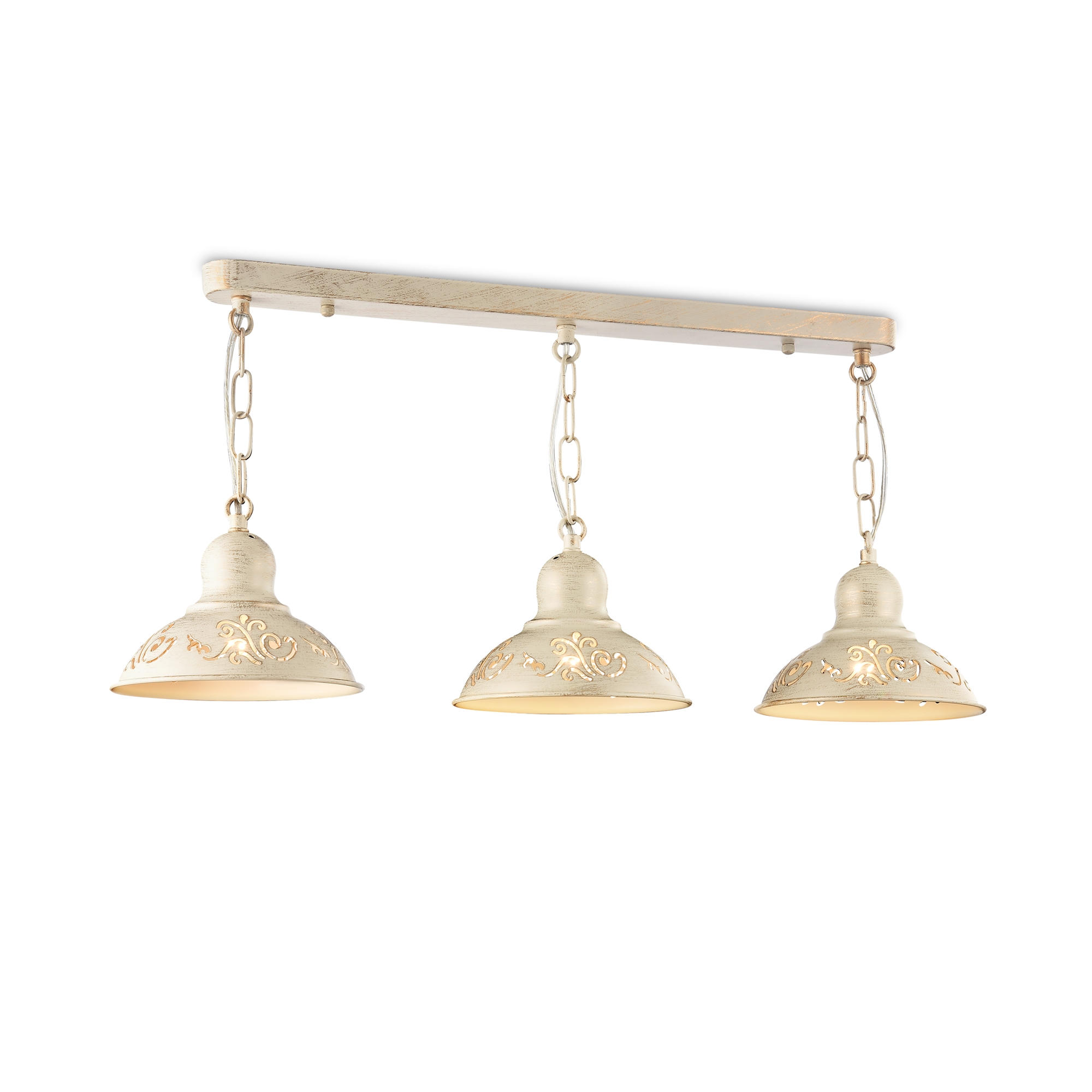 Светильники выполнены из металла цвета кремового золота. На плафонах светильников ажурно вырезаны узоры, прекрасно сочетающиеся с плавными изгибами арматуры. Благодаря большому ассортименту изделий серии Benoit легко выбрать светильник, подходящий как для просторных помещений, так и для небольших.