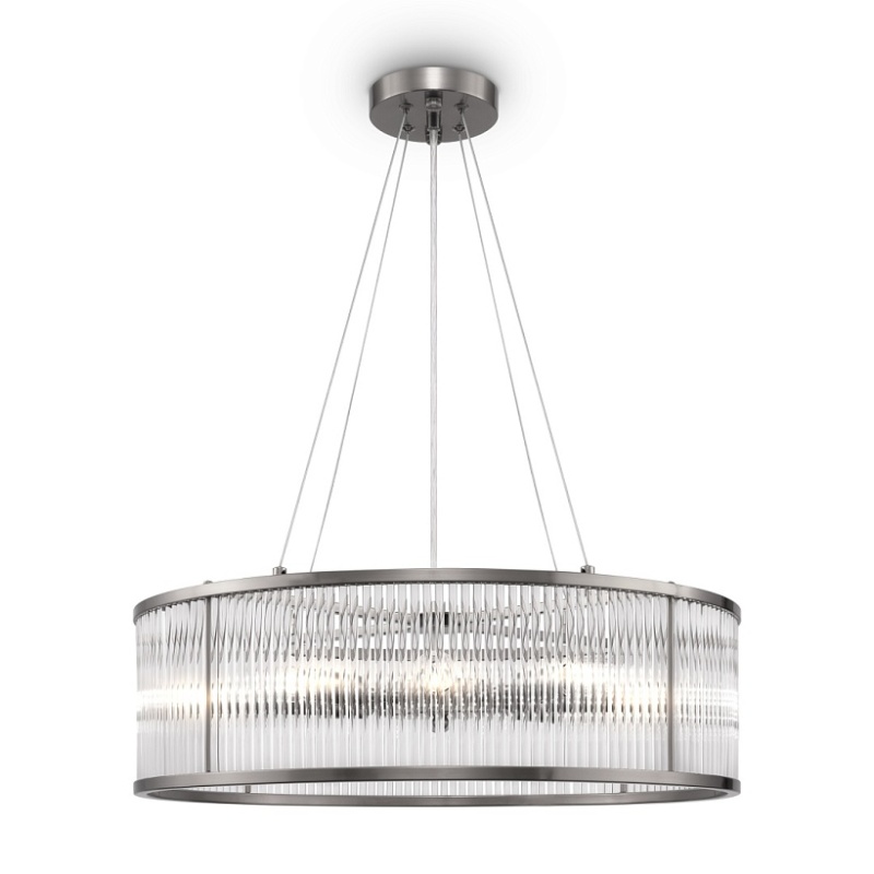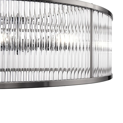 Арматура из металла. Оттенки – латунь, никель. Декор – прозрачные стеклянные трубки, зафиксированные на кольцевой арматуре (у бра – форма полусферы). Высота люстр регулируется. Источник света – лампа с цоколем Е14.