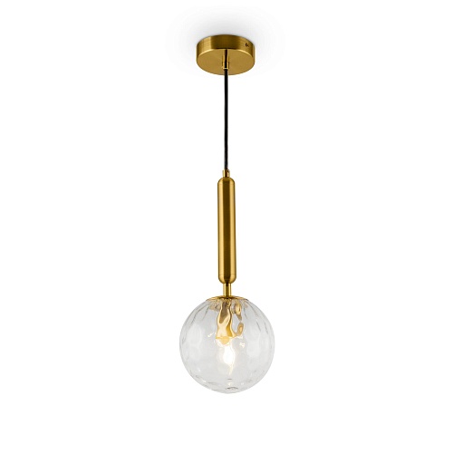 Металлическая арматура оттенка латуни. Плафоны-сферы в двух вариантах: матовое белое стекло и прозрачное с рельефной фактурой. Широкий ассортимент для зональной подсветки. В качестве источника света используется лампа с цоколем Е14.