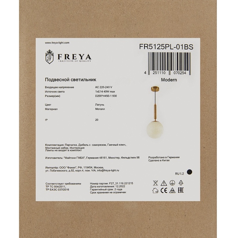 Характеристики Подвесной светильник Freya Zelda FR5125PL-01BS