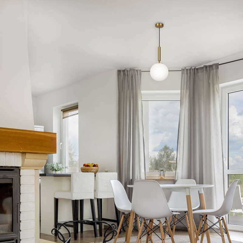 Металлическая арматура оттенка латуни. Плафоны-сферы в двух вариантах: матовое белое стекло и прозрачное с рельефной фактурой. Широкий ассортимент для зональной подсветки. В качестве источника света используется лампа с цоколем Е14.