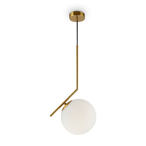 Новый ракурс и необычный угол зрения кардинально меняют представление о традиционных подвесах с плафонами-шарами. В этой серии металлическая арматура светильника изогнута под углом, ломанная линия создает яркий акцент, а сферическая форма плафона подчеркивает оригинальную геометрическую игру. Оттенок латуни и матовое стекло прекрасно дополняют друг друга. Популярный цветовой дуэт легко впишется в пространство современного интерьера. Благодаря наличию в серии светильников разного диаметра, есть возможность создать эффектную акцентную подсветку в помещении любых размеров.