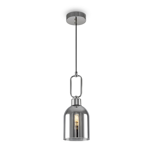 Хромированная металлическая арматура. Стеклянный плафон гальванизирован в тон арматуре. Трендовый арочный силуэт. В качестве источника света используется лампа с цоколем Е27.