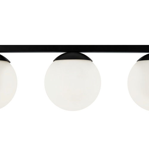 Металлическая арматура. Оттенок – латунь. Плафоны-сферы из матового стекла. Оригинальное конструктивное решение: плафоны размещены на горизонтальной или вертикальной планке. Источник света – лампа с цоколем Е27.