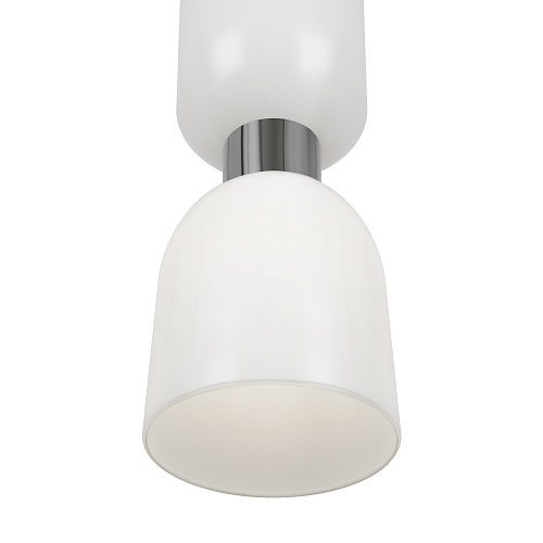 Арматура из металла. Оттенки – хром и латунь. Стеклянные плафоны в двух цветовых решениях: белый глянец и хром с зеркальным эффектом. Оригинальная форма плафонов «песочные часы», двунаправленный световой поток. Широкий ассортимент. Источник света – лампа с цоколем E27.