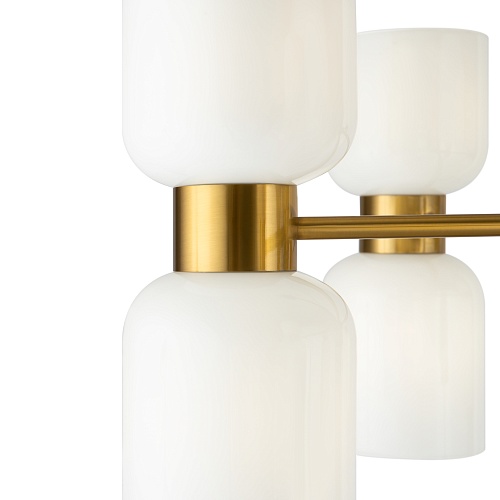 Арматура из металла. Оттенки – хром и латунь. Стеклянные плафоны в двух цветовых решениях: белый глянец и хром с зеркальным эффектом. Оригинальная форма плафонов «песочные часы», двунаправленный световой поток. Широкий ассортимент. Источник света – лампа с цоколем E27.