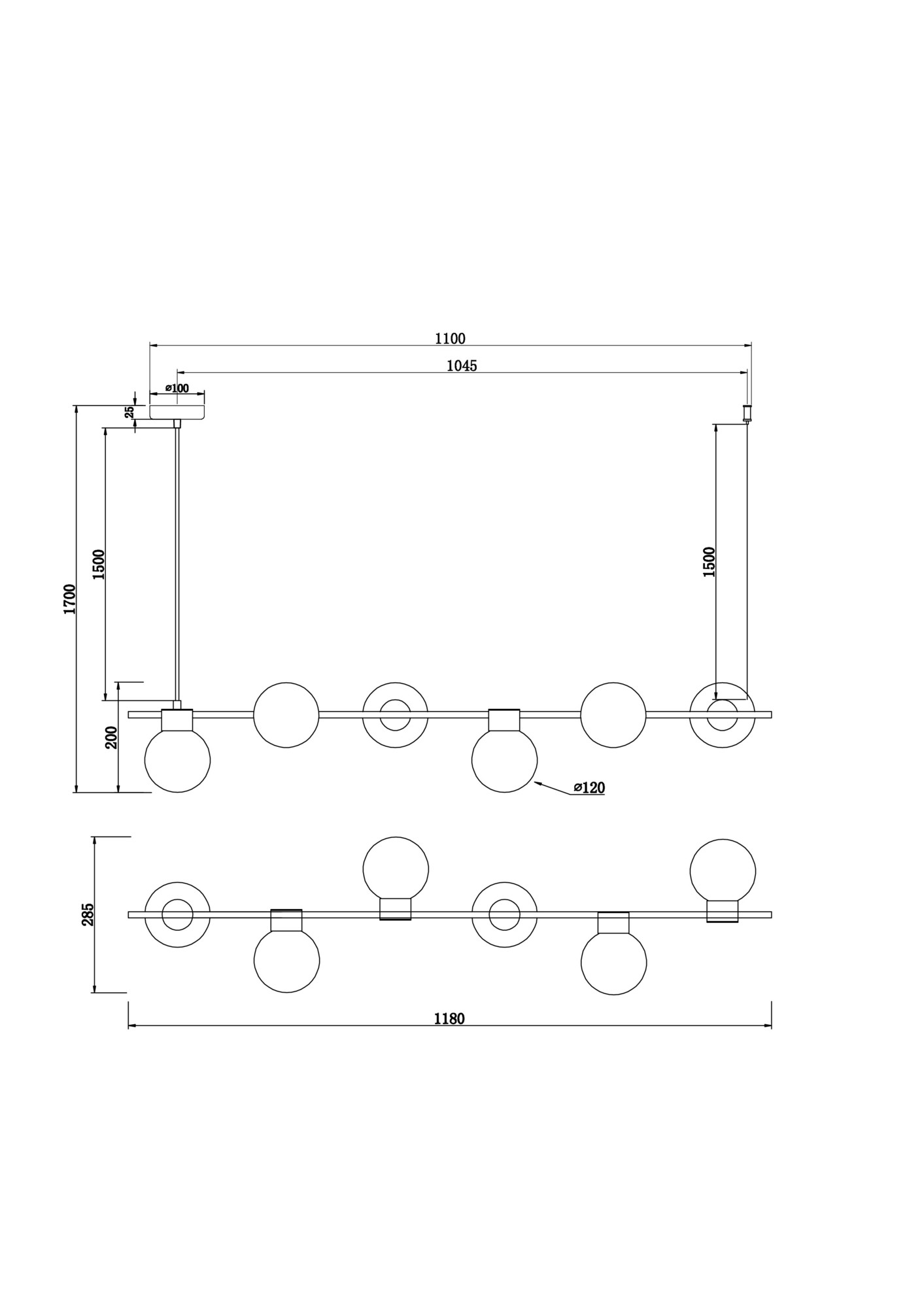 • Диаметр потолочной чаши (мм)