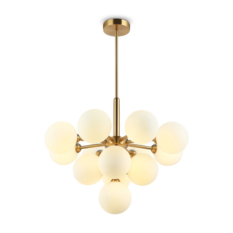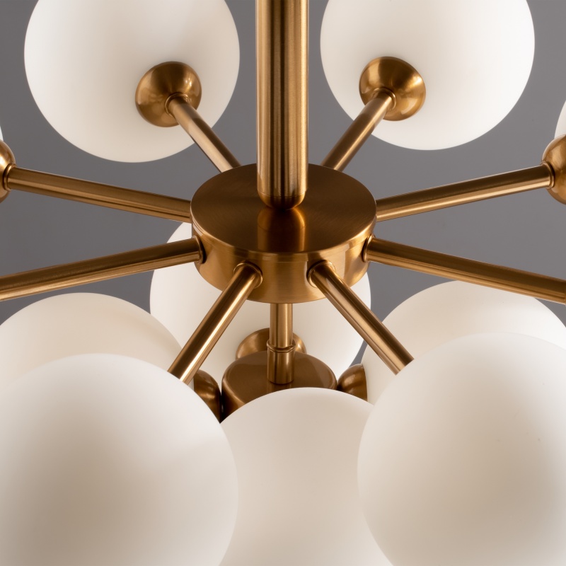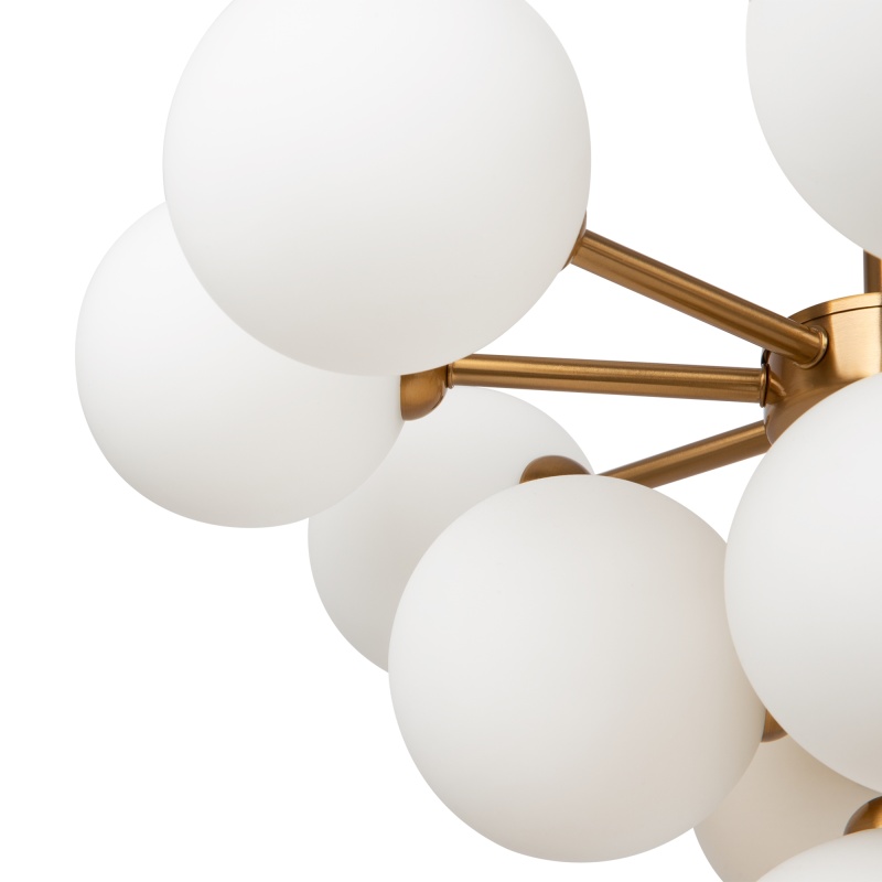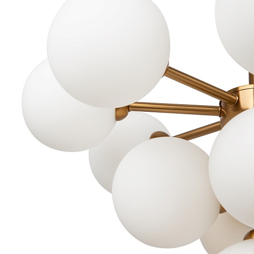 Арматура - металл, цвет - латунь. Стеклянные плафоны-сферы в двух оттенках белый матовый и дымчатый в настенно потолочной версии. Округлые и плавные линии - беспроигрышное сочетание для современных интерьеров. Настенные бра можно использовать как для общего на потолке так и для зонального настенного освещения Источник света - лампа с цоколем G9.