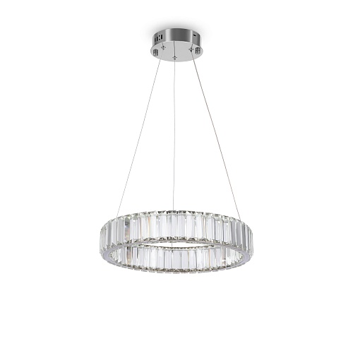 Металлическая арматура в цвете латунь и хром. Хрустальные декоративные кольца с геометричными гранями. LED-источник света. Регулировка цветовой температуры (3000-4000-5000K) и яркости 4G-dimming при помощи пульта (в комплекте).