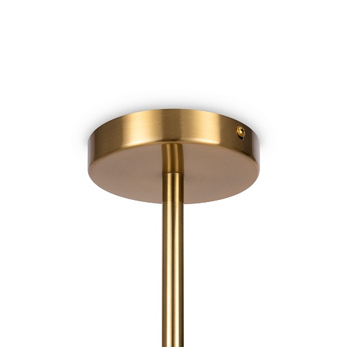 Материал арматуры — рифленый металл, цвет — латунь. Плафоны-сферы из белого матового стекла для мягкого заливающего света. Воздушный образ плафонов, строгие тонкие линии арматуры придадут интерьеру изящество и легкость. Высота подвесов регулируется. Источник света — лампы с цоколем G9.