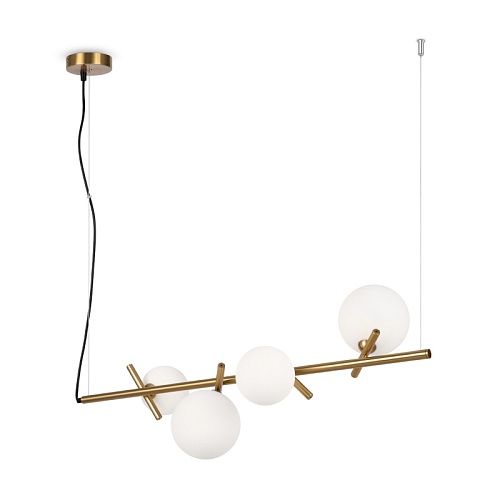 Материал арматуры — рифленый металл, цвет — латунь. Плафоны-сферы из белого матового стекла для мягкого заливающего света. Воздушный образ плафонов, строгие тонкие линии арматуры придадут интерьеру изящество и легкость. Высота подвесов регулируется. Источник света — лампы с цоколем G9.