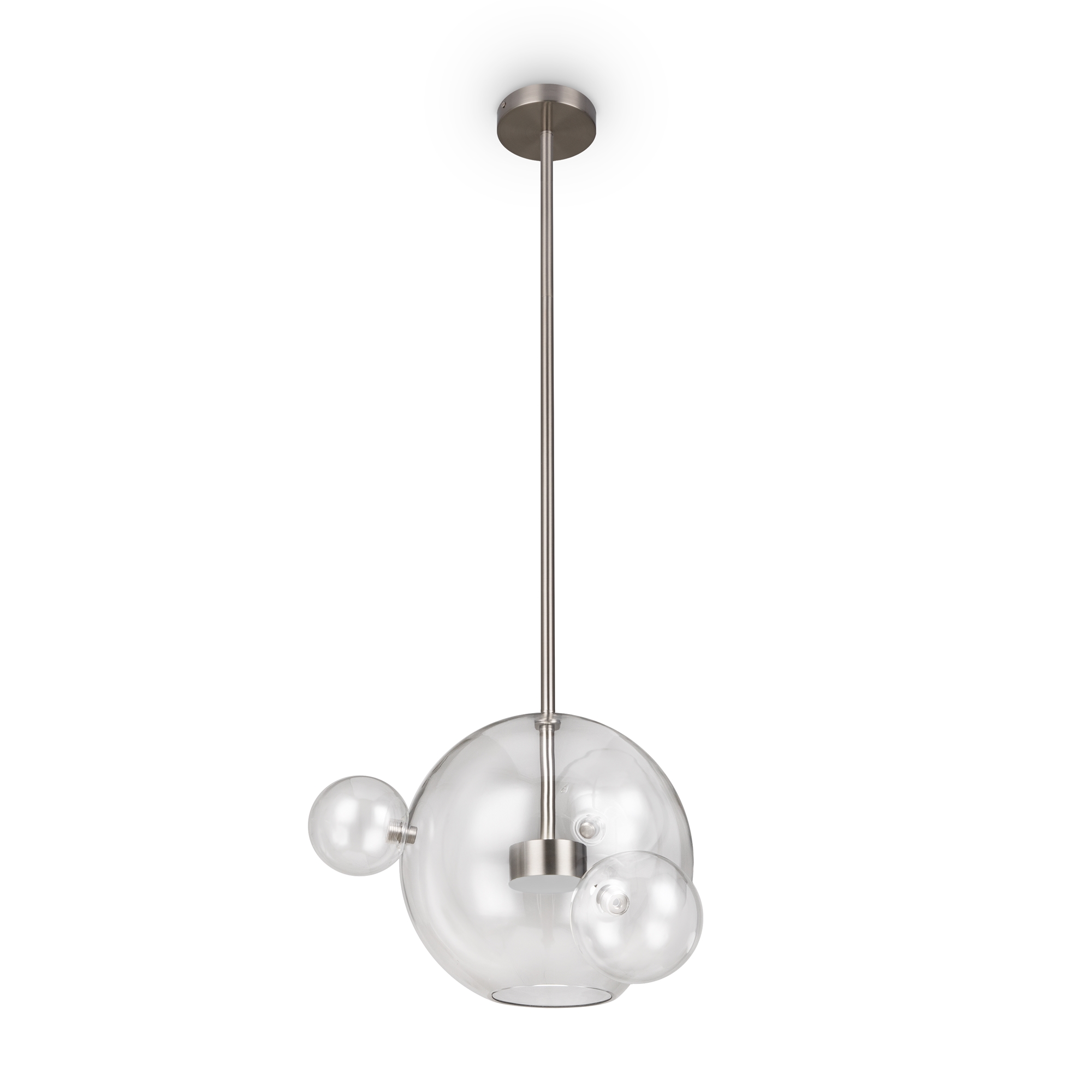 Материал арматуры – металл, цвет – латунь. Плафон – прозрачное глянцевое стекло. Трендовая сферическая форма. Энергоэффективные LED-источники обеспечивают равномерный яркий свет.