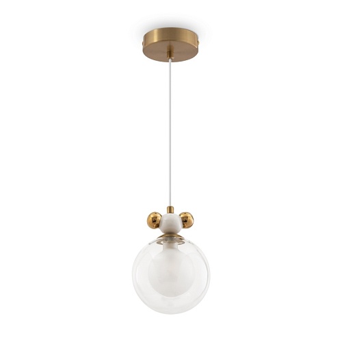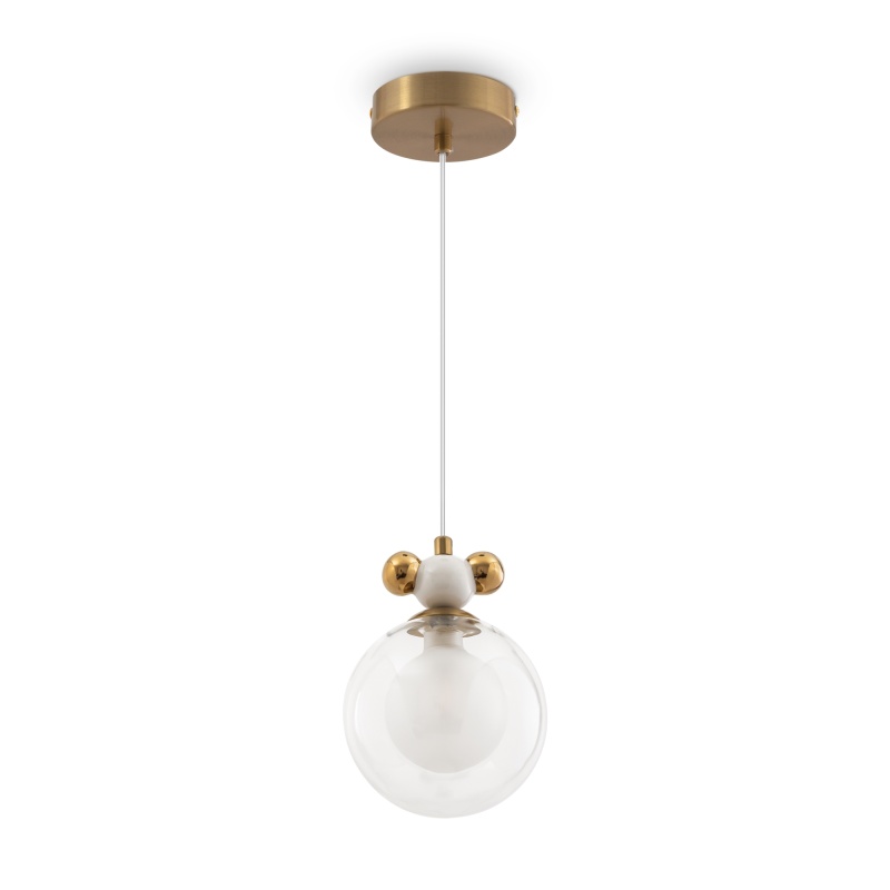 Металлическая арматура, два цвета — латунь и хром. Разные по форме плафоны — цилиндрические или овальные, украшены металлическими шариками. Стекло двойное, прозрачное или с легким матовым напылением. Конструкцию можно регулировать по высоте. Источником света служит лампа с цоколем G9 или Е14.