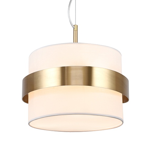Цилиндрической формы абажур из ткани белого цвета. Декоративная парящая окантовка из металла в цвет арматуры. Регулируется по длине. Компактные размеры подходят для низких потолков и небольших интерьеров. Металлическая арматура, цвет - латунь и никель. Источник света — лампа с цоколем Е14, E27 и для настенного бра дополнительный LED с температурой свечения 3000 K.
