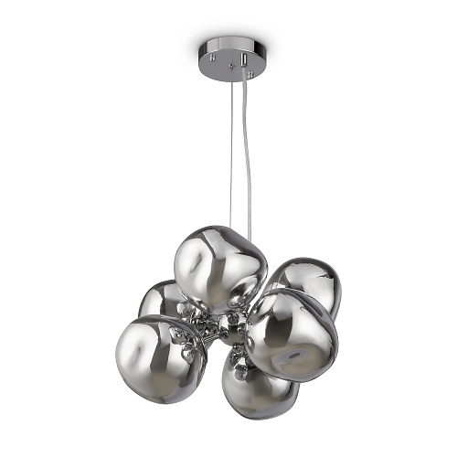 Арматура — металл, цвет — хром. Шарообразные плафоны с зеркальным эффектом и переливами. Материал - стекло с серебристым напылением. Источник света — лампа с цоколем — G9.