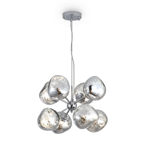 Арматура — металл, цвет — хром. Шарообразные плафоны с зеркальным эффектом и переливами. Материал - стекло с серебристым напылением. Источник света — лампа с цоколем — G9.