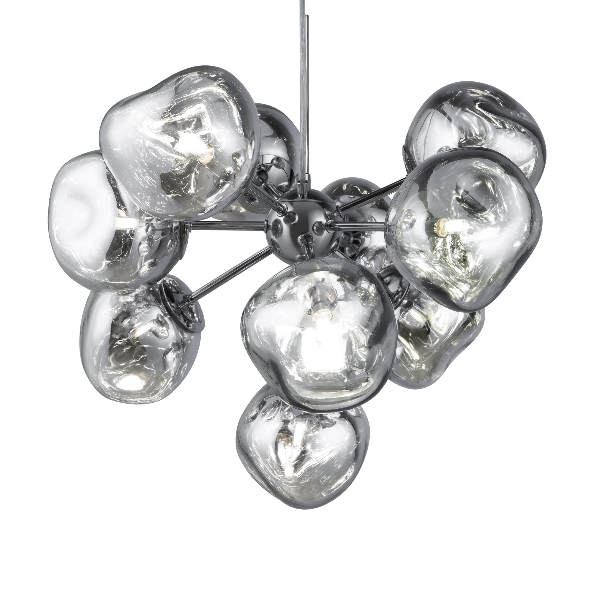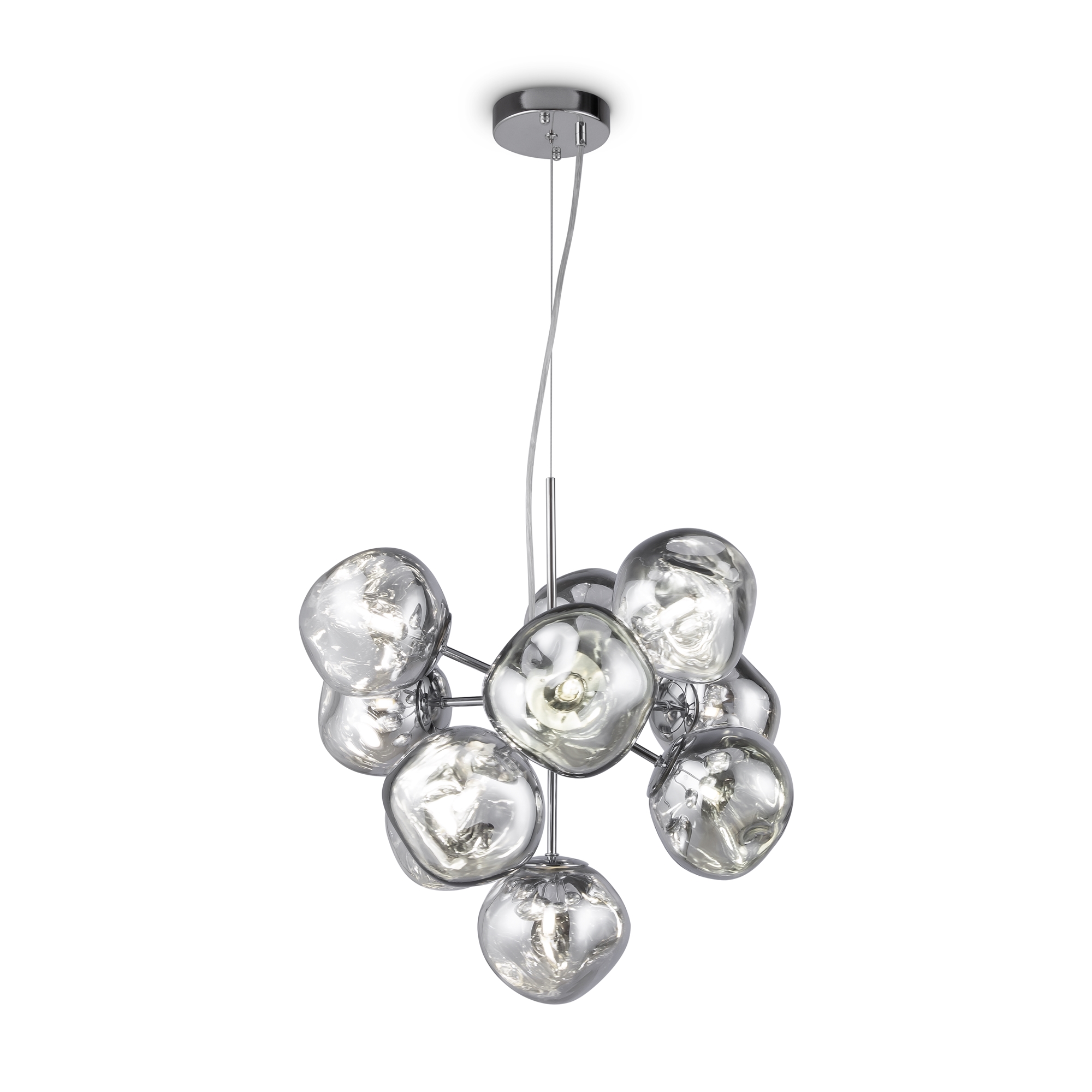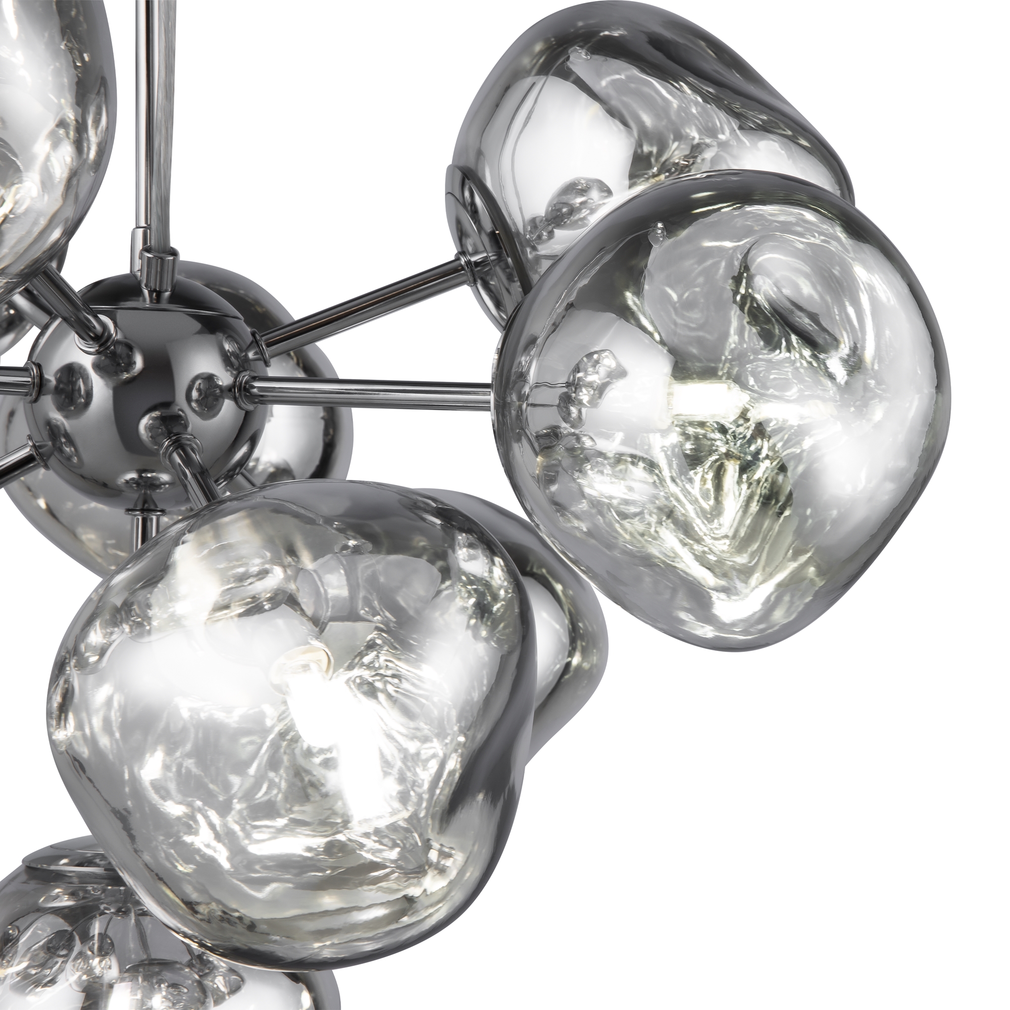 Арматура — металл, цвет — хром. Шарообразные плафоны с зеркальным эффектом и переливами. Материал - стекло с серебристым напылением. Источник света — лампа с цоколем — G9.