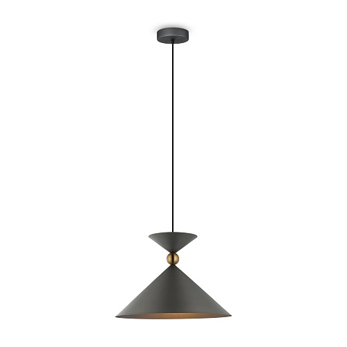 Арматура и плафоны из металла в двух цветах — белом и сером. Плафон состоит из 2-х конусов разных размеров, соединённых золотистым декоративным элементом. Высота регулируется. Идеальны для составления композиций. Источник света — лампа с цоколем Е27.