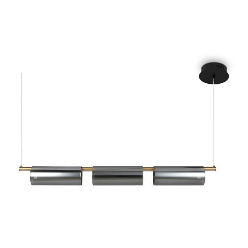 Арматура — металл, цвет — латунь. Плафоны из прозрачного стекла с дымчатым оттенком в форме овала, круга или конуса. Универсальный минималистичный дизайн позволяет составлять комбинации из нескольких подвесов. Регулируемая высота. Тренд «invisible light» - LED-источник света утоплен в основание плафона. Цветовая температура - 3000К.