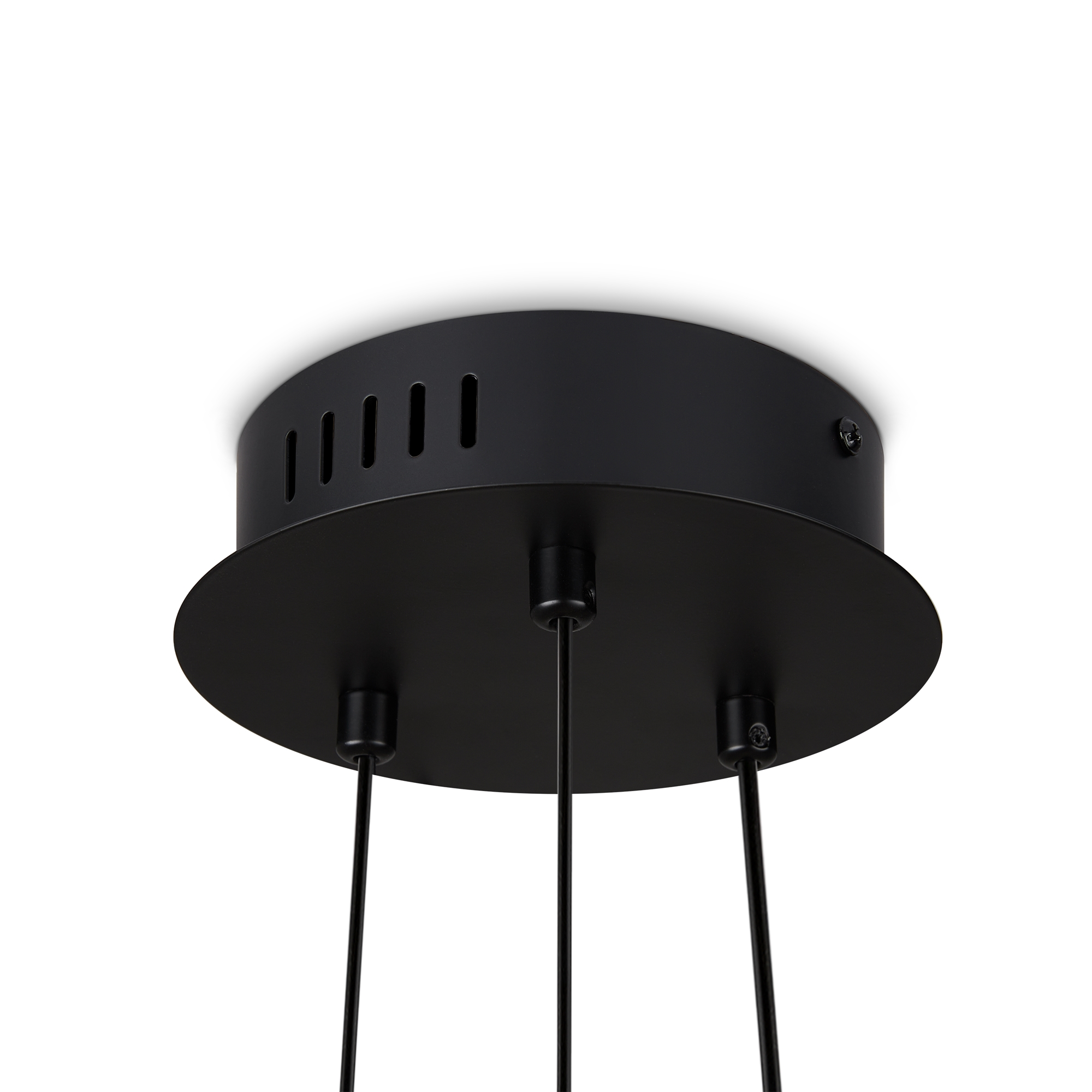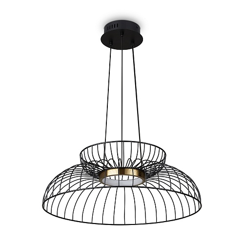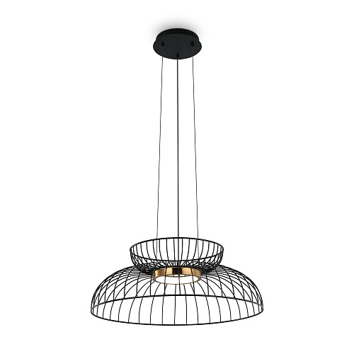 Металлическая арматура чёрного цвета. LED-источник света обрамлен декоративным металлическим кольцом цвета латунь. Минималистичный дизайн - хорошо сочетается с другими осветительными приборами. Высота подвеса регулируется. Цветовая температура - 3000К.