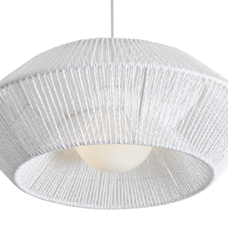 Современный актуальный свет в стиле загородного отдыха. Абажуры из металлического каркаса с обмоткой из натуральных материалов. Материал абажура - металл и веревка из бумаги paper rope. Два цвета - черный и молочный. Источник света - сменные лампы внутри белого матового стеклянного плафона, который создает мягкий рассеянный свет. Эко-дизайн создает атмосферу комфорта и уюта для жилых или коммерческих помещений.