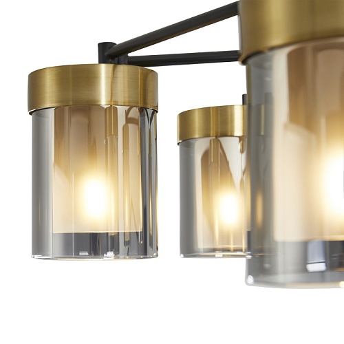 Арматура - металл в двух востребованных оттенках латунь и черный. Плафоны из двойного стекла дымчатого оттенка, внутри белый матовый. Трендовая форма плафонов в виде цилиндра. Потолочные светильники подойдут для помещений с низкими потолками. Источник света лампа. Цоколь E14