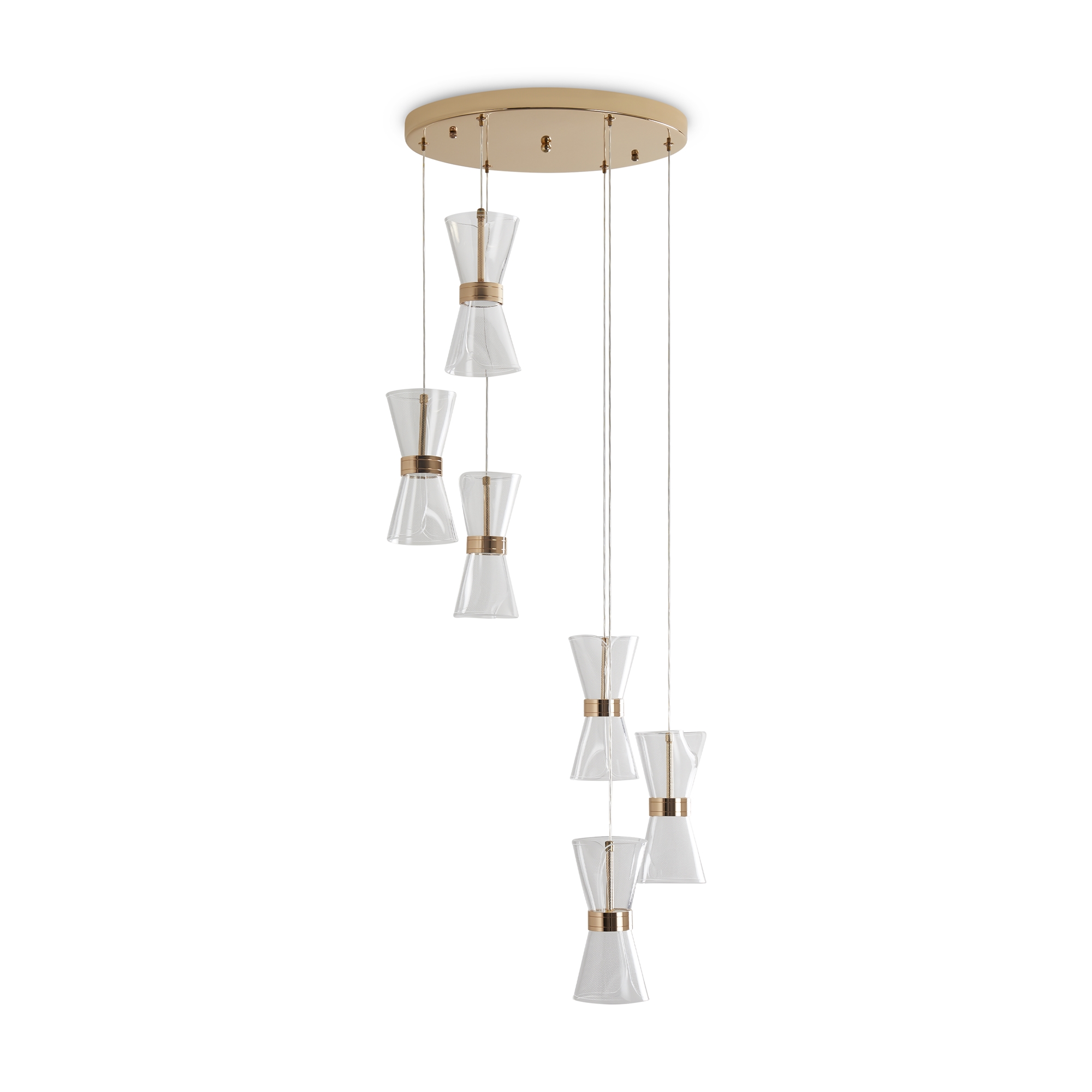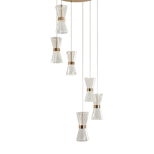Арматура металл. Цвет золото. Плафоны из акрила. Форма песочные часы. Золотая окантовка как декоративный элемент. К светильникам прилагается пульт управления. LED источник света. Цветовая температура 2600-6000К.