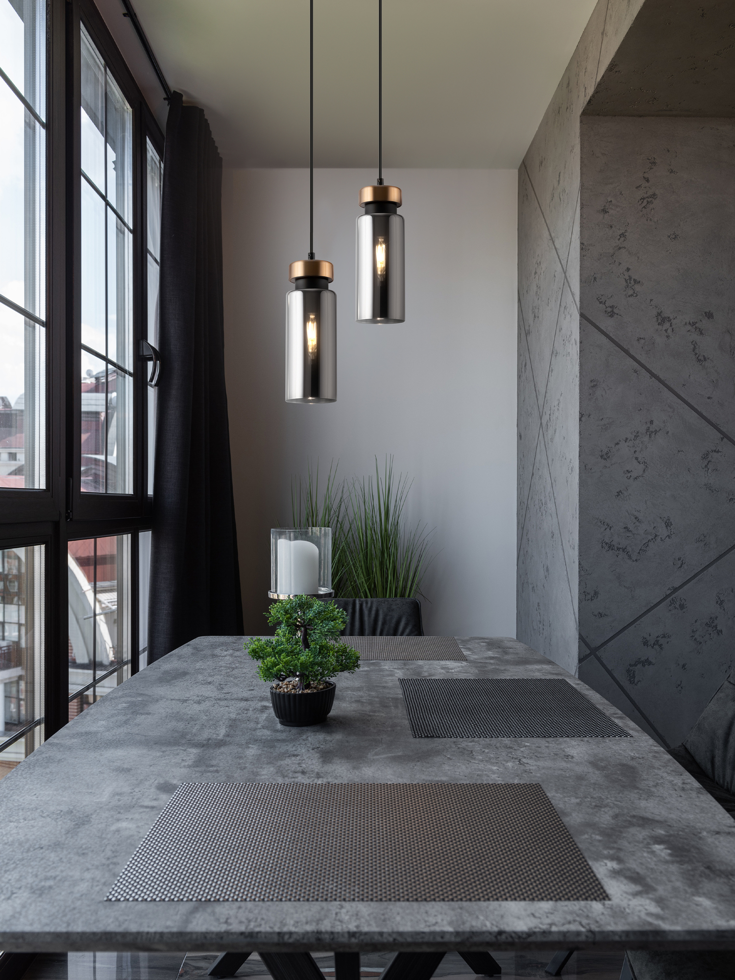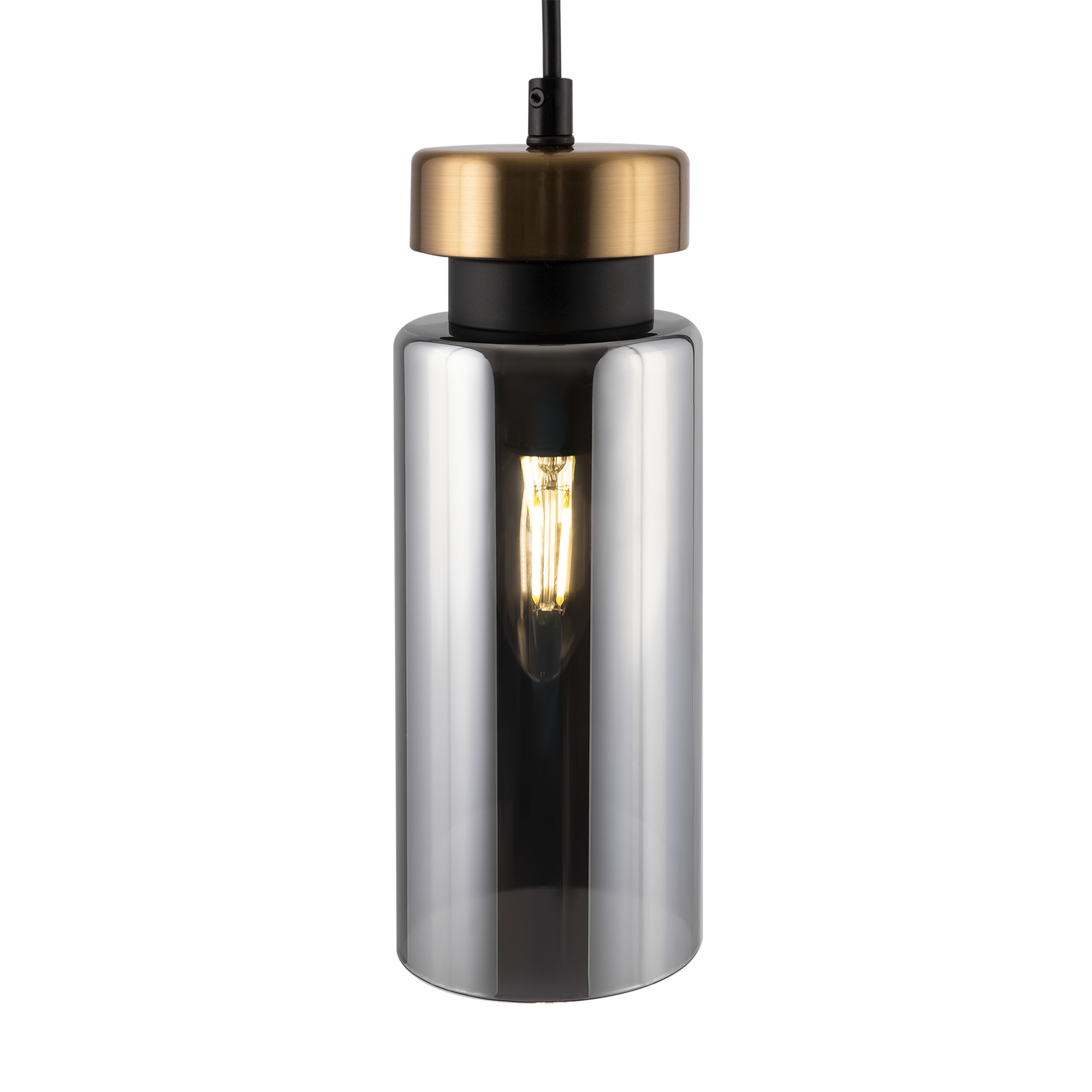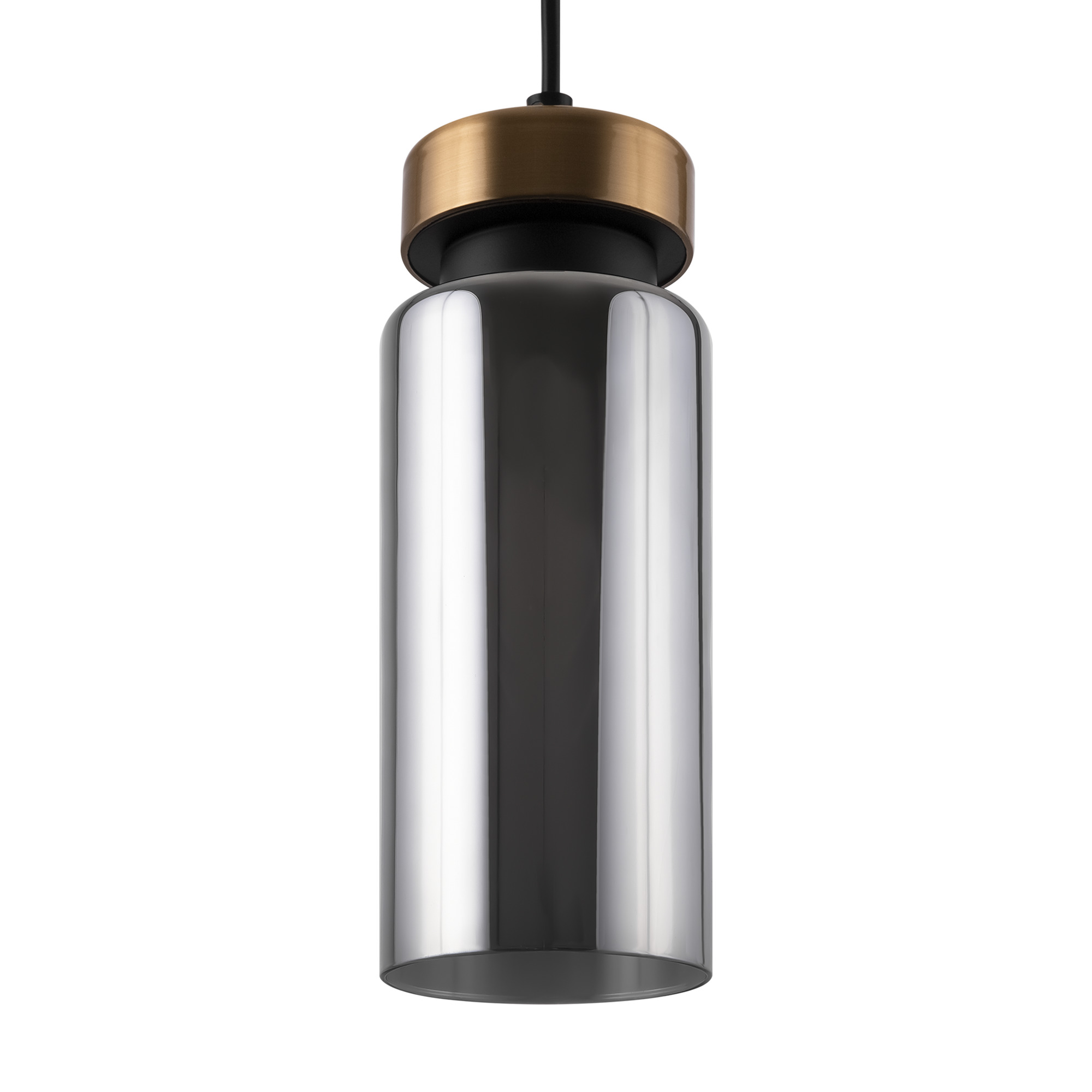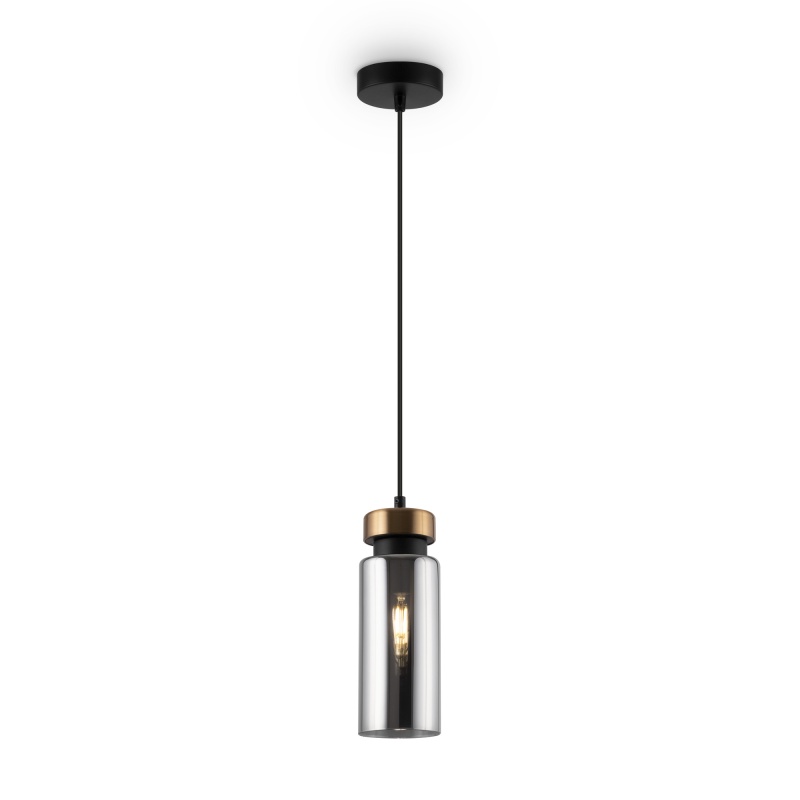 Металлическая арматура в двух оттенках: никель и черный с золотом. Плафон – глянцевое стекло. Цвет – серый. Оригинальная вытянутая цилиндрическая форма для акцентной подсветки. Источник света – лампа с цоколем E14.