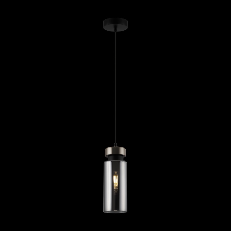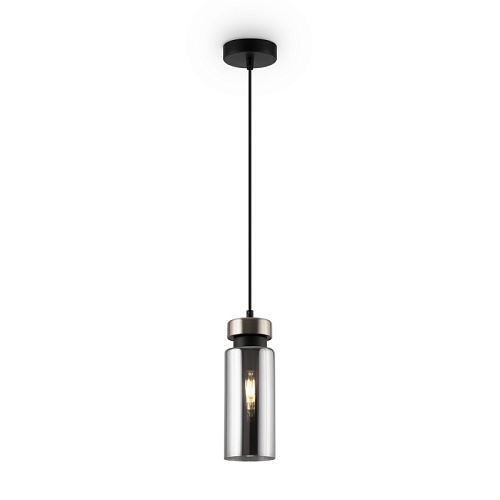 Металлическая арматура в двух оттенках: никель и черный с золотом. Плафон – глянцевое стекло. Цвет – серый. Оригинальная вытянутая цилиндрическая форма для акцентной подсветки. Источник света – лампа с цоколем E14.