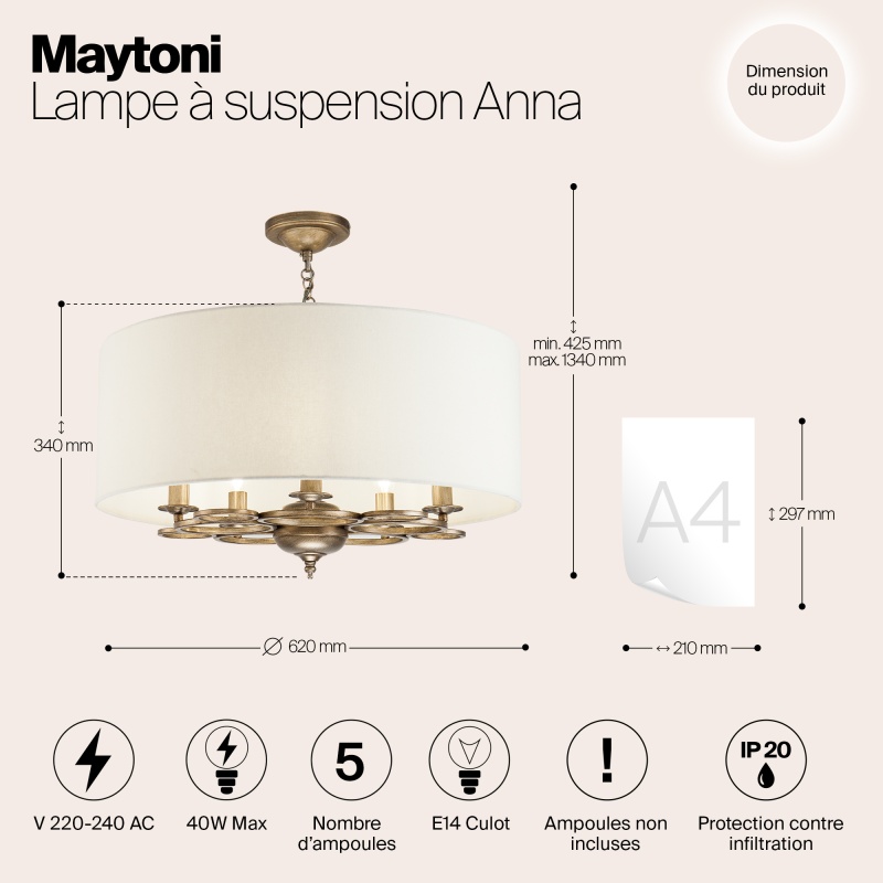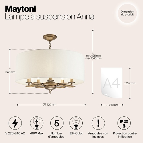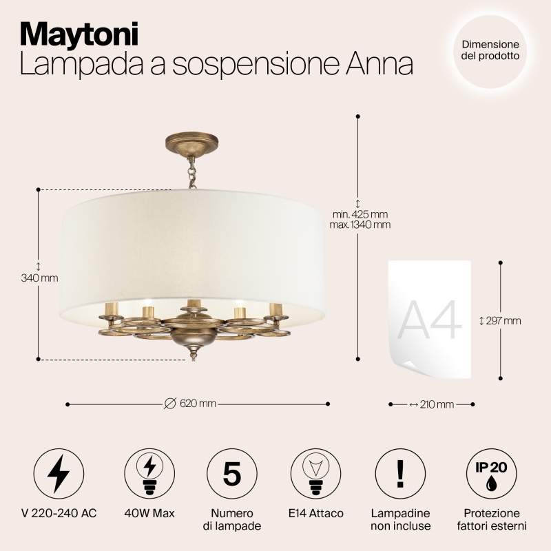 Характеристики Подвесной светильник Maytoni Anna H007PL-05G