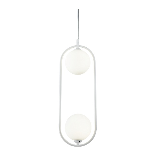 Арматура из металла в трех оттенках: белый, черный, латунь. Плафоны-сферы закреплены на округлом металлическом каркасе. Материал плафонов — выдувное стекло, цвет — белый. Высота подвесных моделей регулируется.