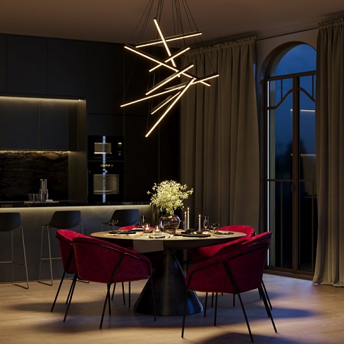 Серия Line выполнена в стиле минимализм. Светильники подойдут для современного интерьера, не перегружая его лишними деталями. Благодаря регулируемой высоте подвесные светильники серии подходят для помещений с любой высотой потолка.