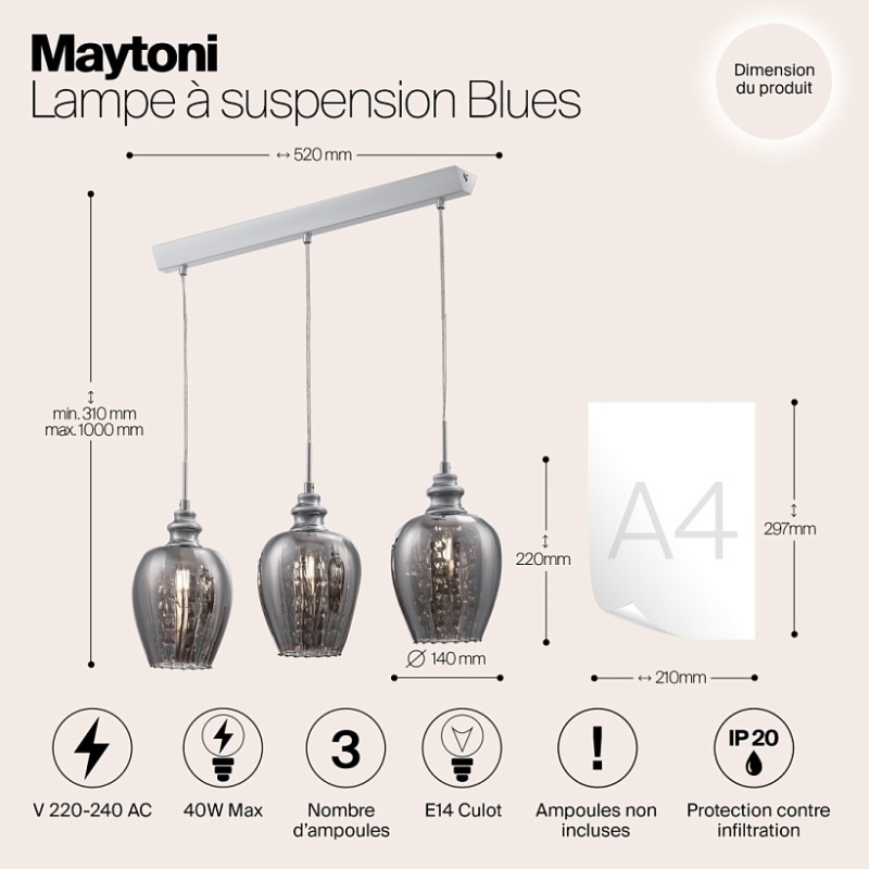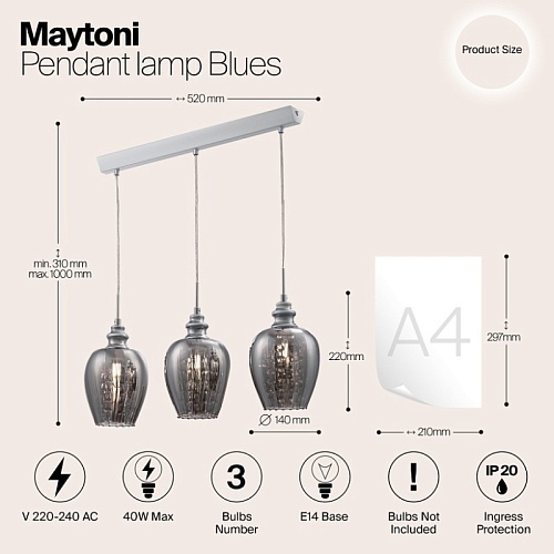 Характеристики Подвесной светильник Maytoni Blues MOD033-PL-03-N