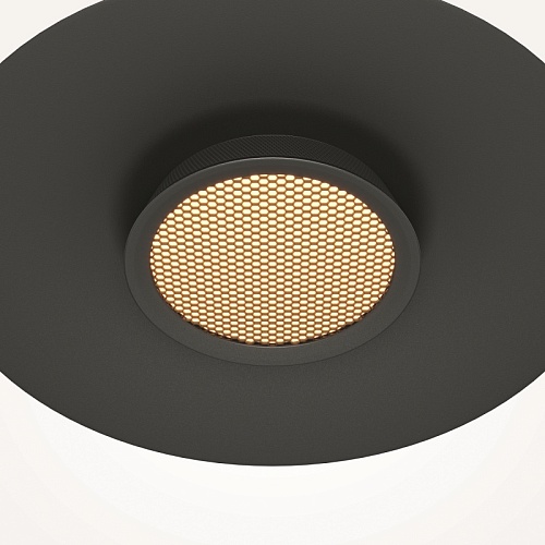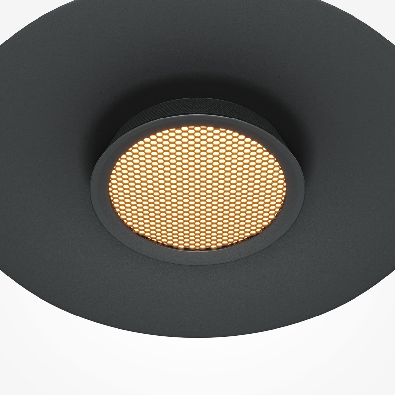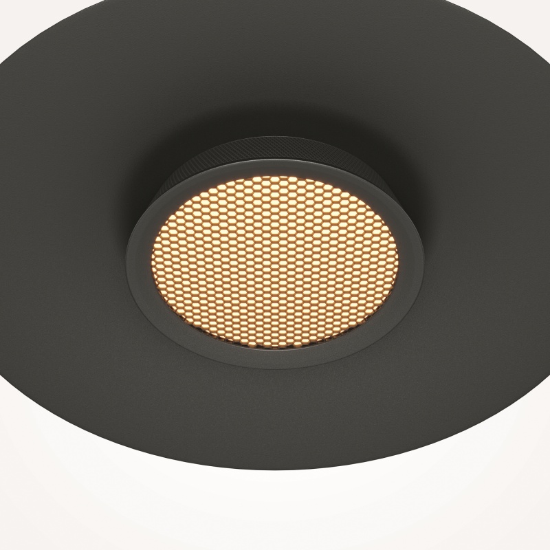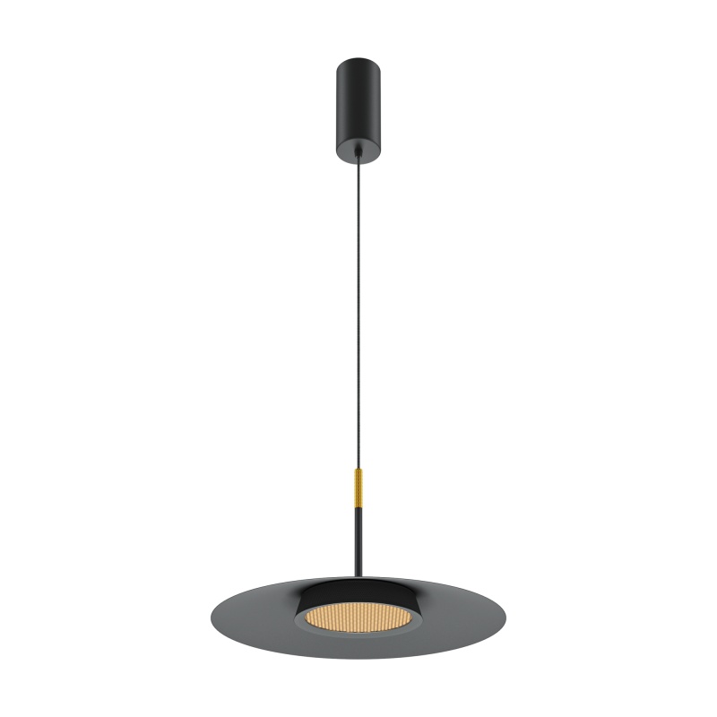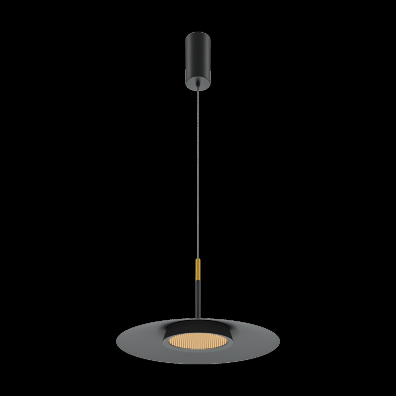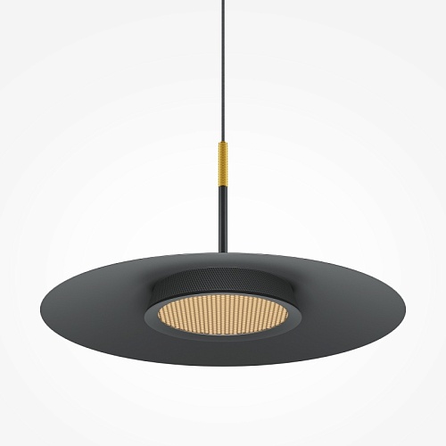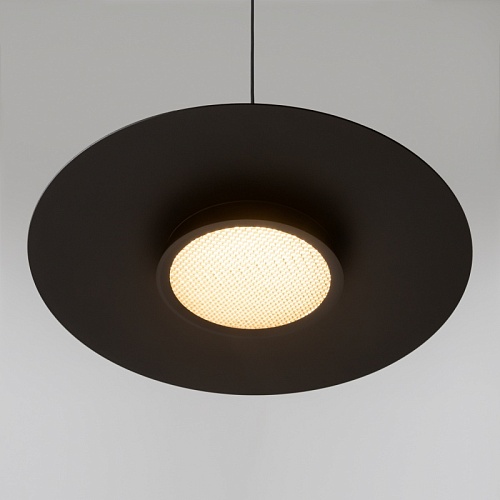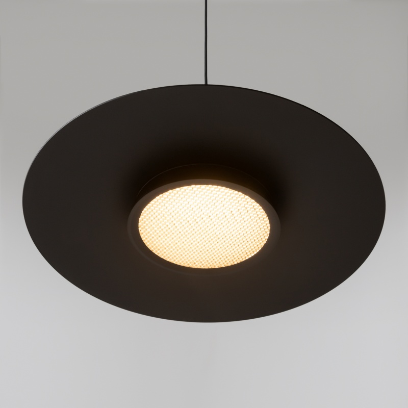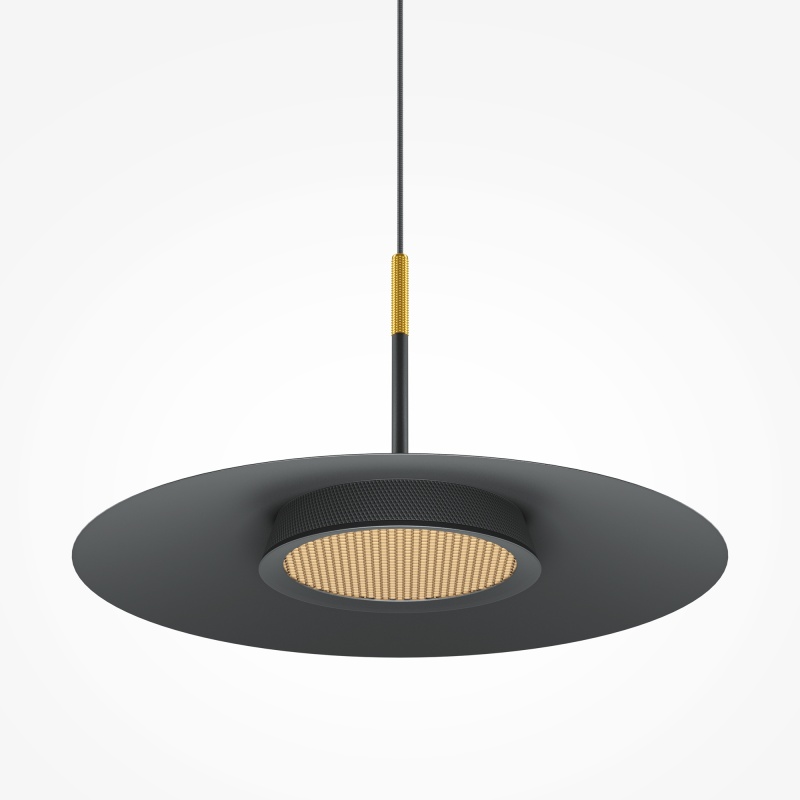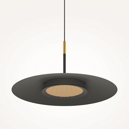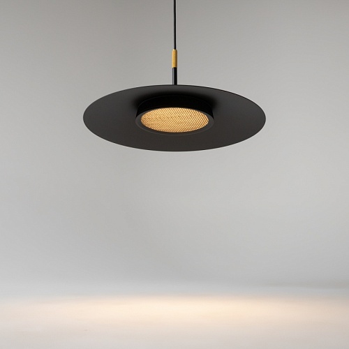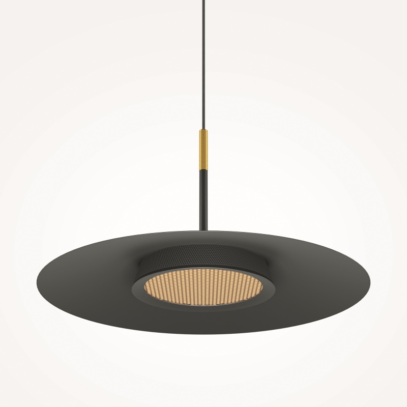 Металлический корпус, цветовая палитра - черный, белый, золото и терракотовый. Два вида плафонов: «таблетка» с графичным рельефом из ассиметричных линий; «таблетка» + идеально-гладкая металлическая «тарелка». Дизайн вдохновлен супрематической эстетикой. LED-источник света, цветовая температура - 3000К. Регулируемый провод - 3 метра.