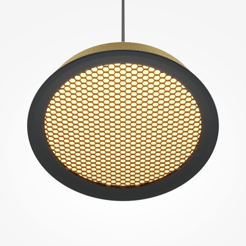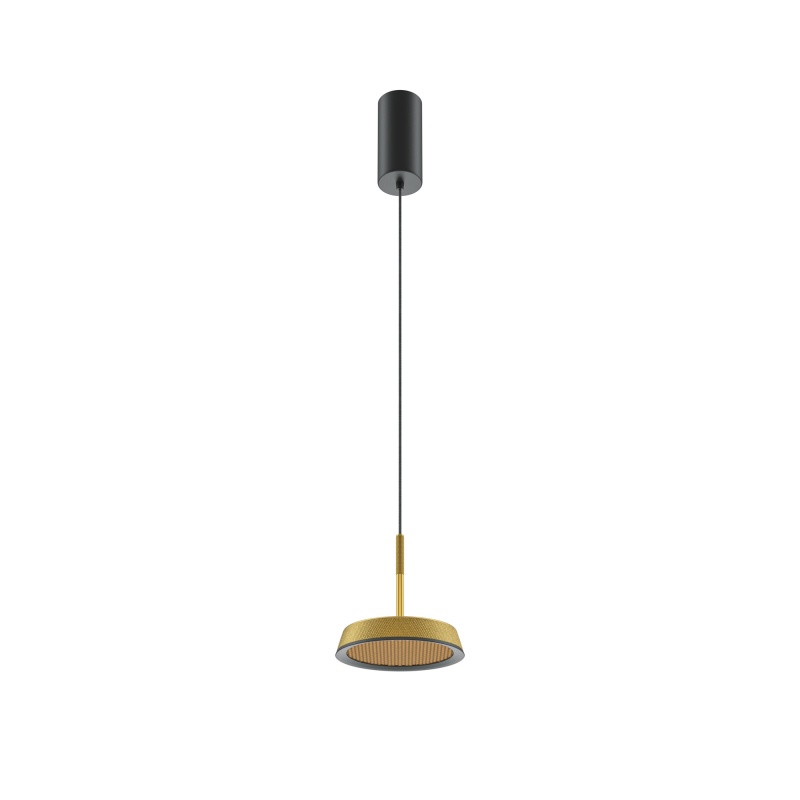Металлический корпус, цветовая палитра - черный, белый, золото и терракотовый. Два вида плафонов: «таблетка» с графичным рельефом из ассиметричных линий; «таблетка» + идеально-гладкая металлическая «тарелка». Дизайн вдохновлен супрематической эстетикой. LED-источник света, цветовая температура - 3000К. Регулируемый провод - 3 метра.