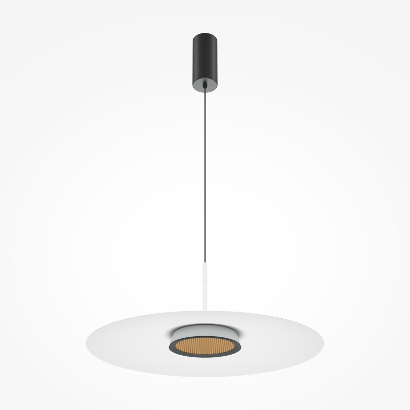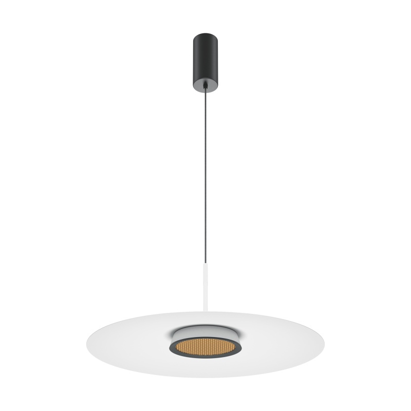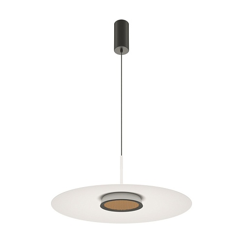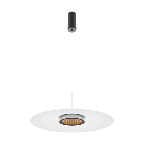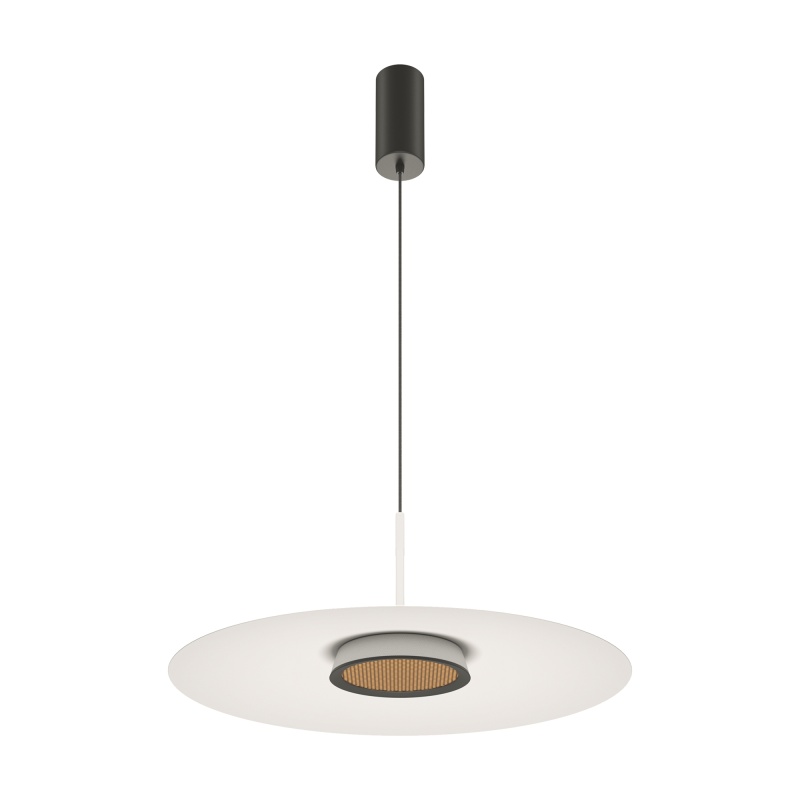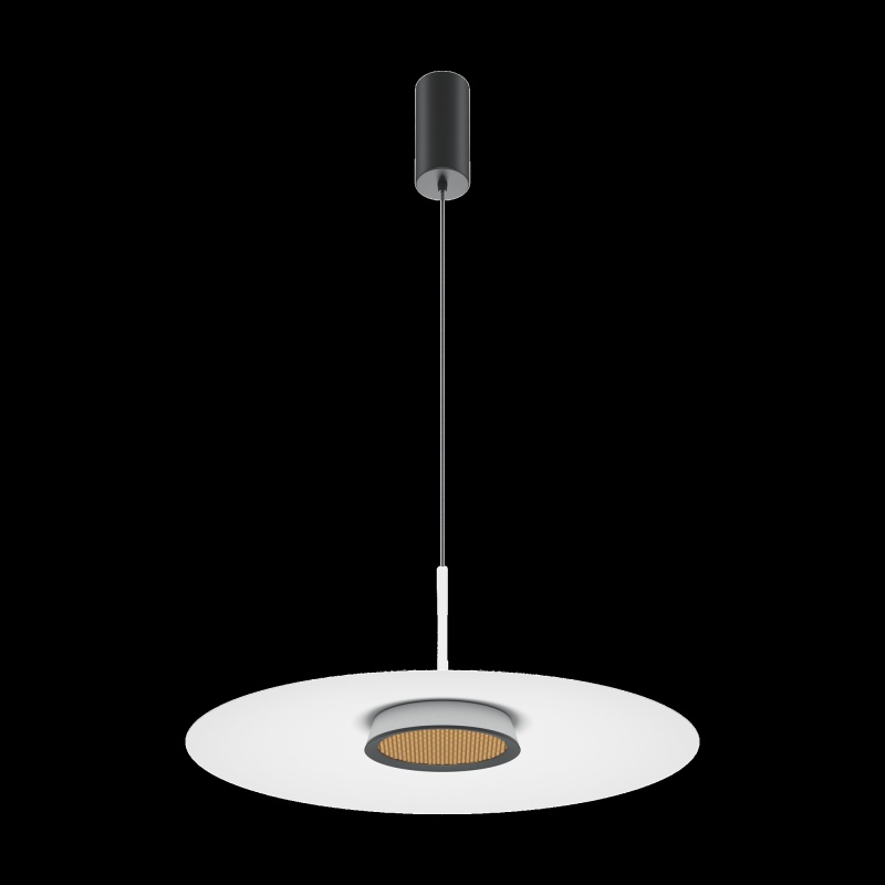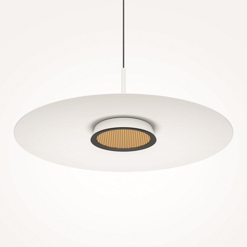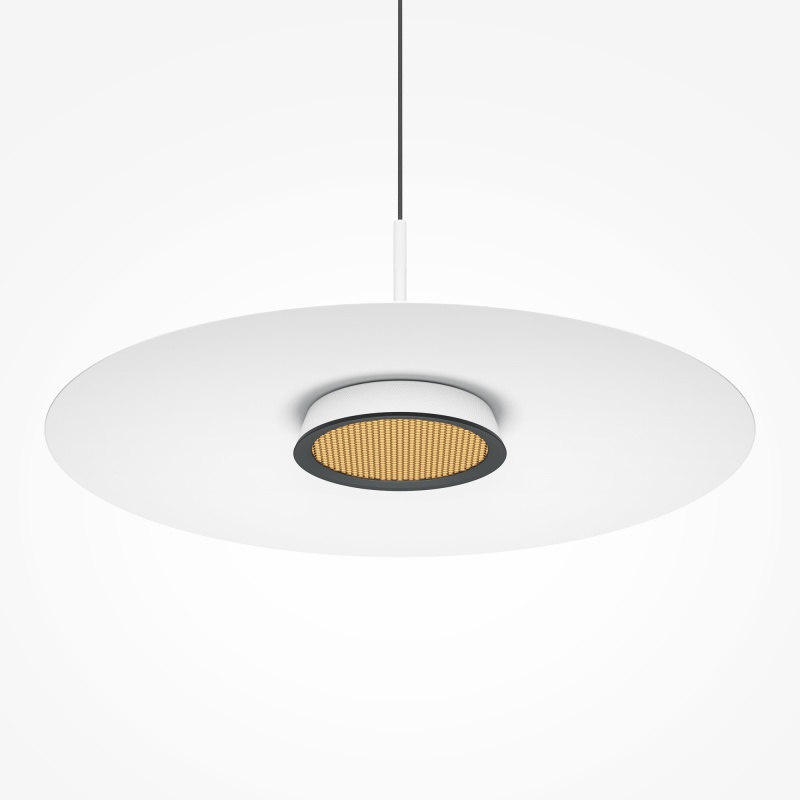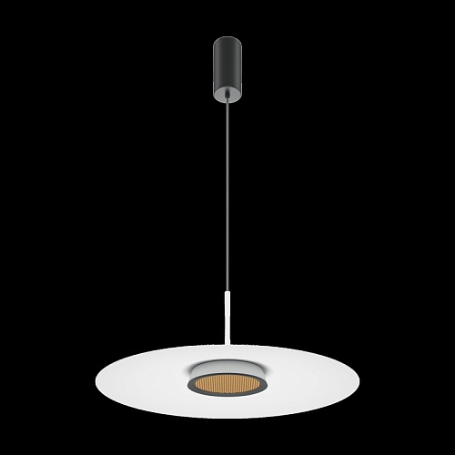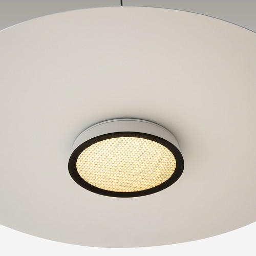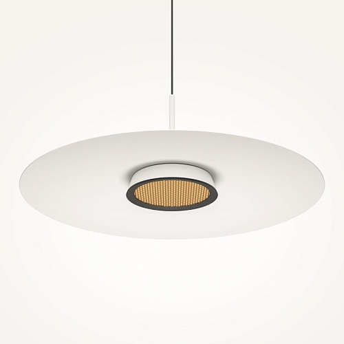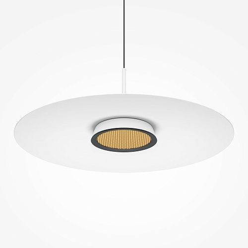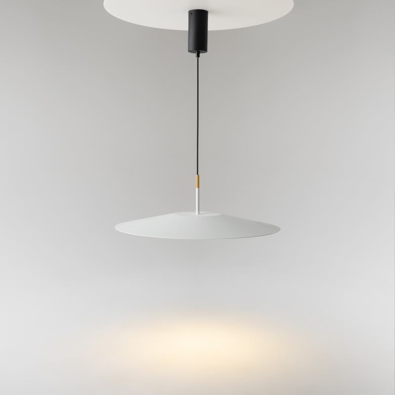 Металлический корпус, цветовая палитра - черный, белый, золото и терракотовый. Два вида плафонов: «таблетка» с графичным рельефом из ассиметричных линий; «таблетка» + идеально-гладкая металлическая «тарелка». Дизайн вдохновлен супрематической эстетикой. LED-источник света, цветовая температура - 3000К. Регулируемый провод - 3 метра.