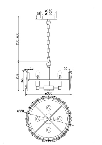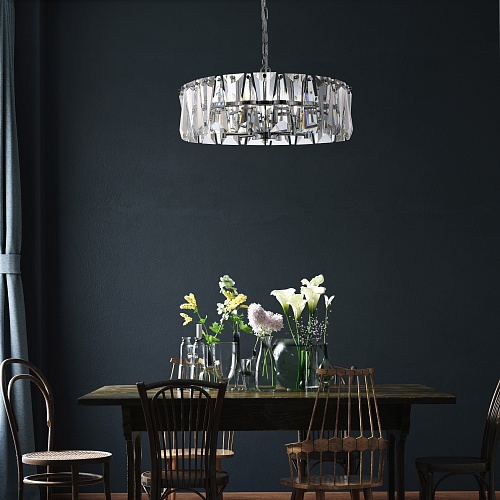 Материал арматуры – металл, оттенки – хром и золото. Декор – массивные крис таллы сложной огранки. Высота подвесных моделей регулируется длиной цепи. Источник света - лампа с цоколем Е14.