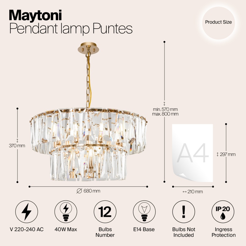Характеристики Подвесной светильник Maytoni Puntes MOD043PL-12G