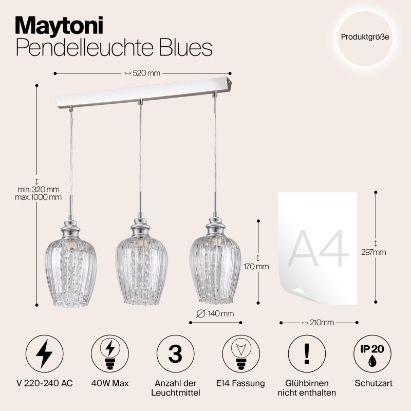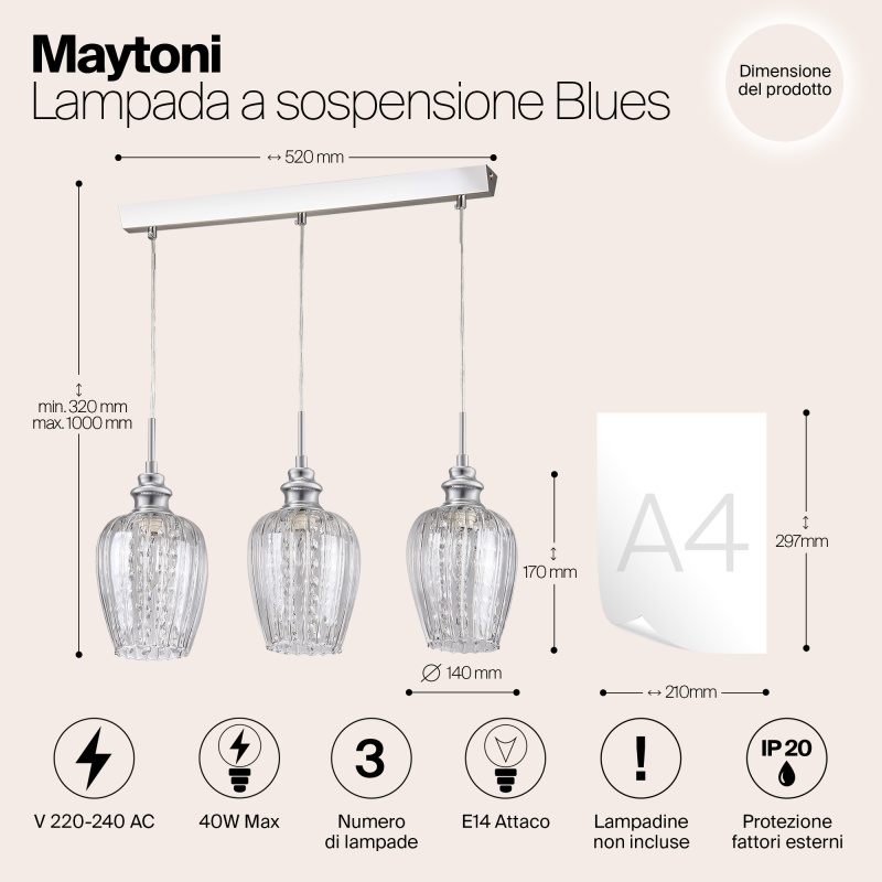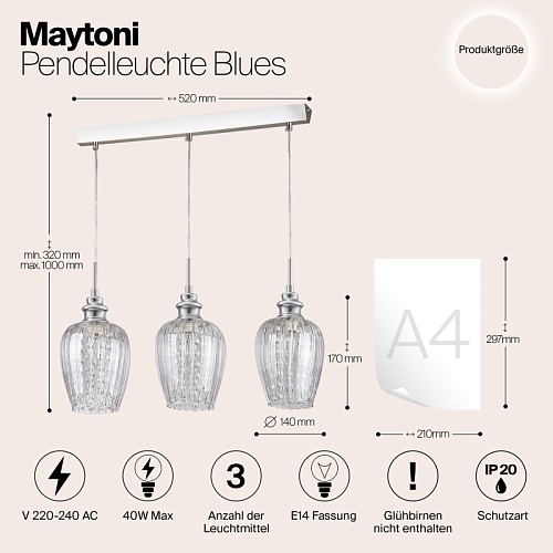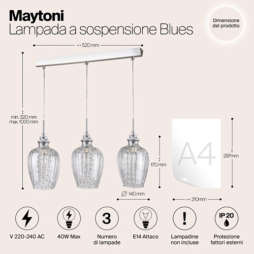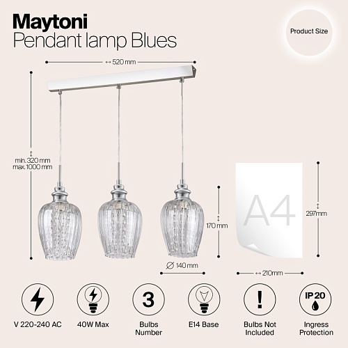 Характеристики Подвесной светильник Maytoni Blues MOD044-PL-03-N