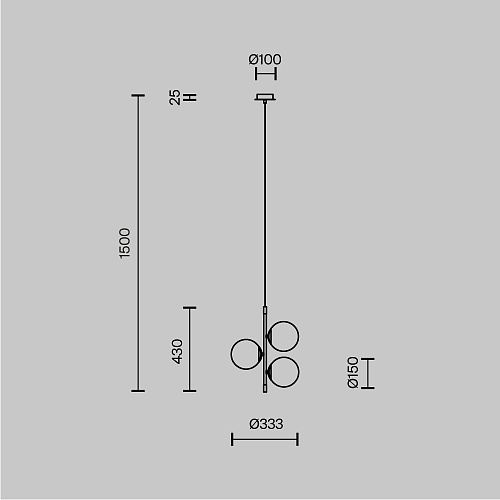 Арматура из металла в цвете матового золота. Плафоны-сферы из матового выдувного стекла. Модная асимметрия в дизайне. Источник света — лампы с цоколем Е14.