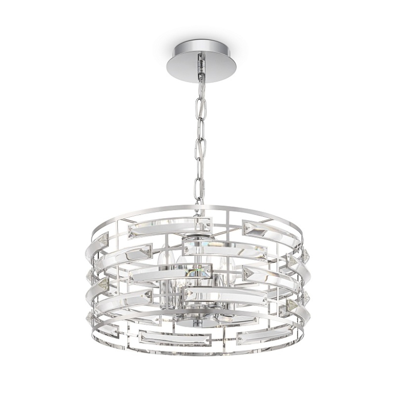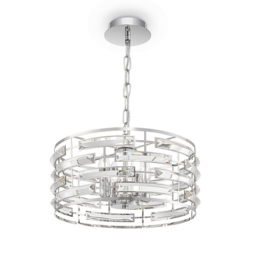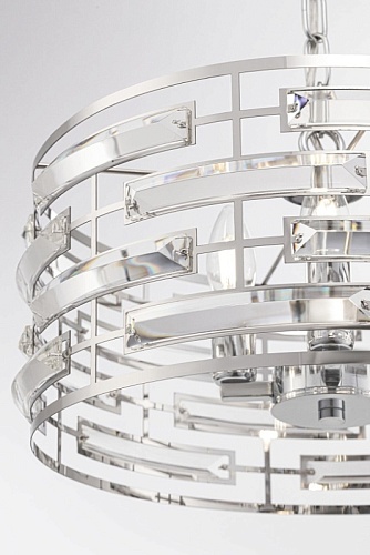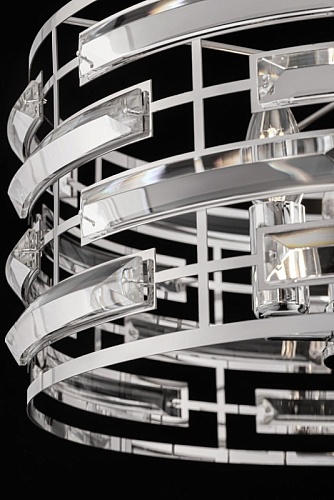 Арматура из нержавеющей стали, цвет арматуры – хром. Металлический каркас абажура декорирован прозрачным хрусталем. Высота подвесных моделей регу лируется.