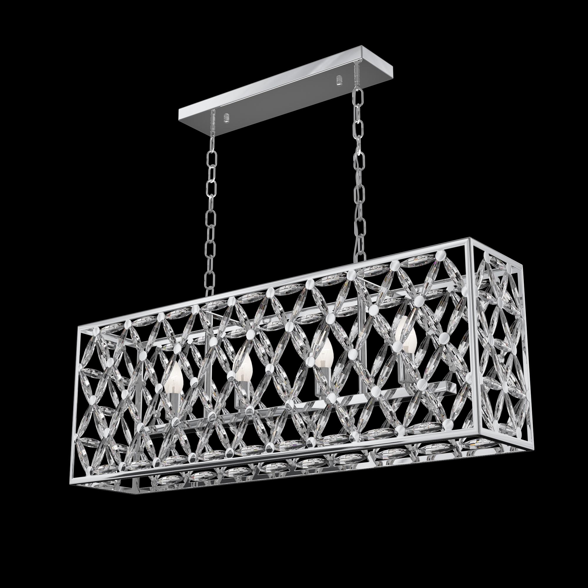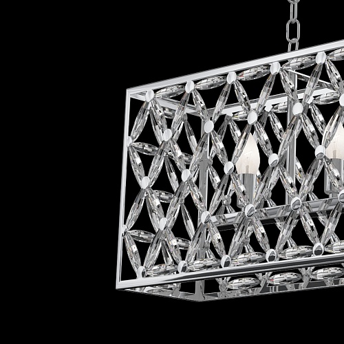 Светильники серии образованы множеством граненых кристаллов, соединенных между собой и закрепленных на раме из полированного металла. Являясь олицетворением престижа, элегантности и оригинального стиля исполнения, они будут жемчужиной освещаемого интерьера. Высоту подвесных светильников возможно изменить, регулируя длину цепи.