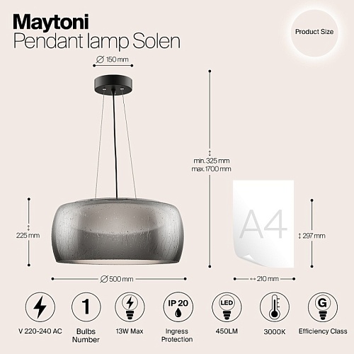 Характеристики Подвесной светильник Maytoni Solen MOD073PL-L16B3K