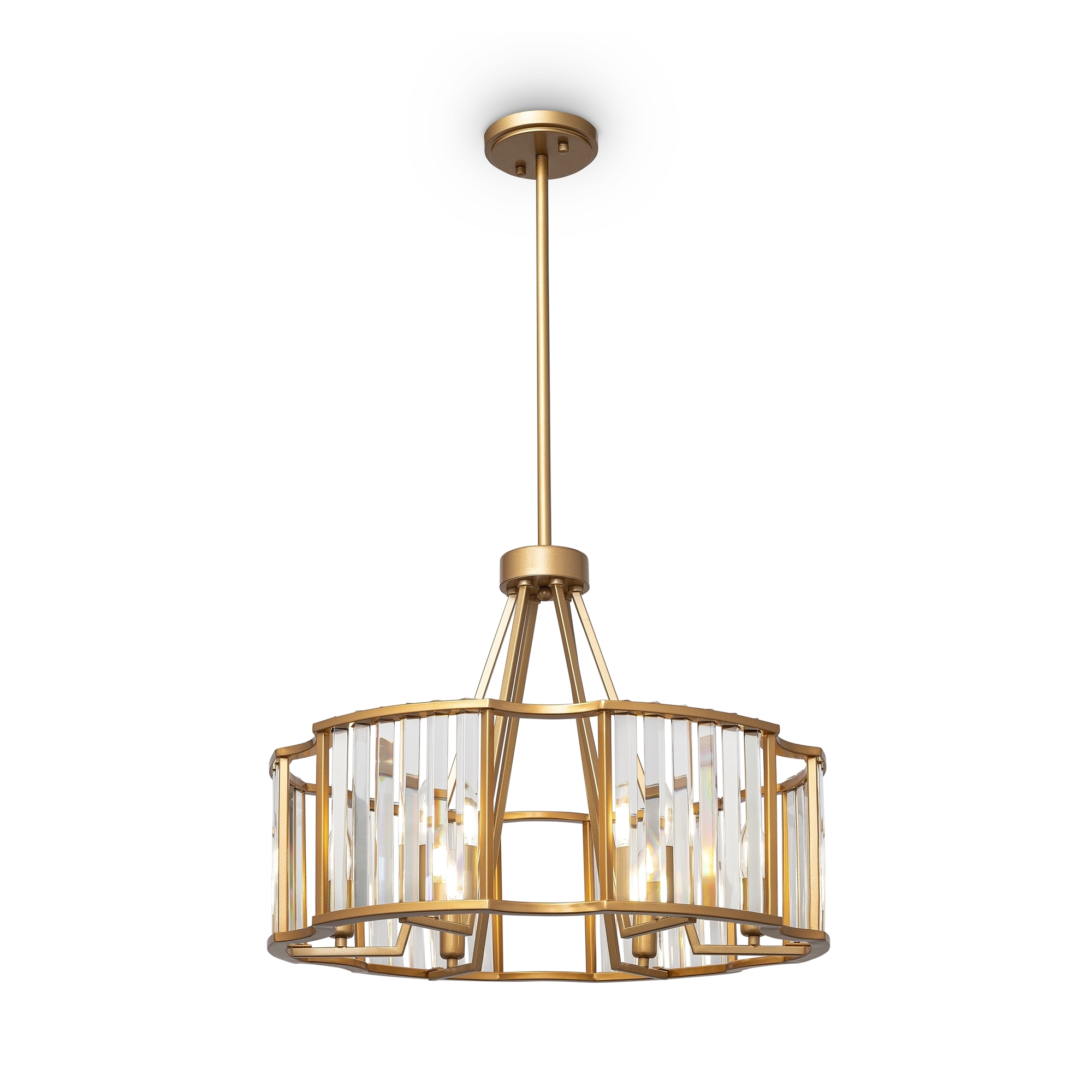 Арматура из металла в золотом цвете. Прозрачный стеклянный декор закреплен на металлическом каркасе, окрашенном в тоне арматуре. Источники света в форме свечей.