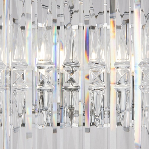 Материал арматуры – металл, оттенки – хром и золото. Декор – прозрачные стек лянные кристаллы. Архитектурная огранка декоративных элементов. Цоколь Е14.