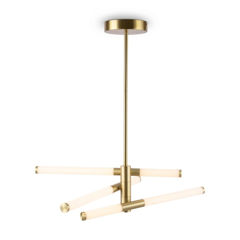 Материал арматуры – алюминий, цвет – золото. Настенные модели в трех оттенках арматуры: золото, черный, белый. Плафоны-трубки из матового акрила равно мерно распределяют свет. Трендовая асимметрия в дизайне люстр. LED-источники света с цветовой температура 3000К.